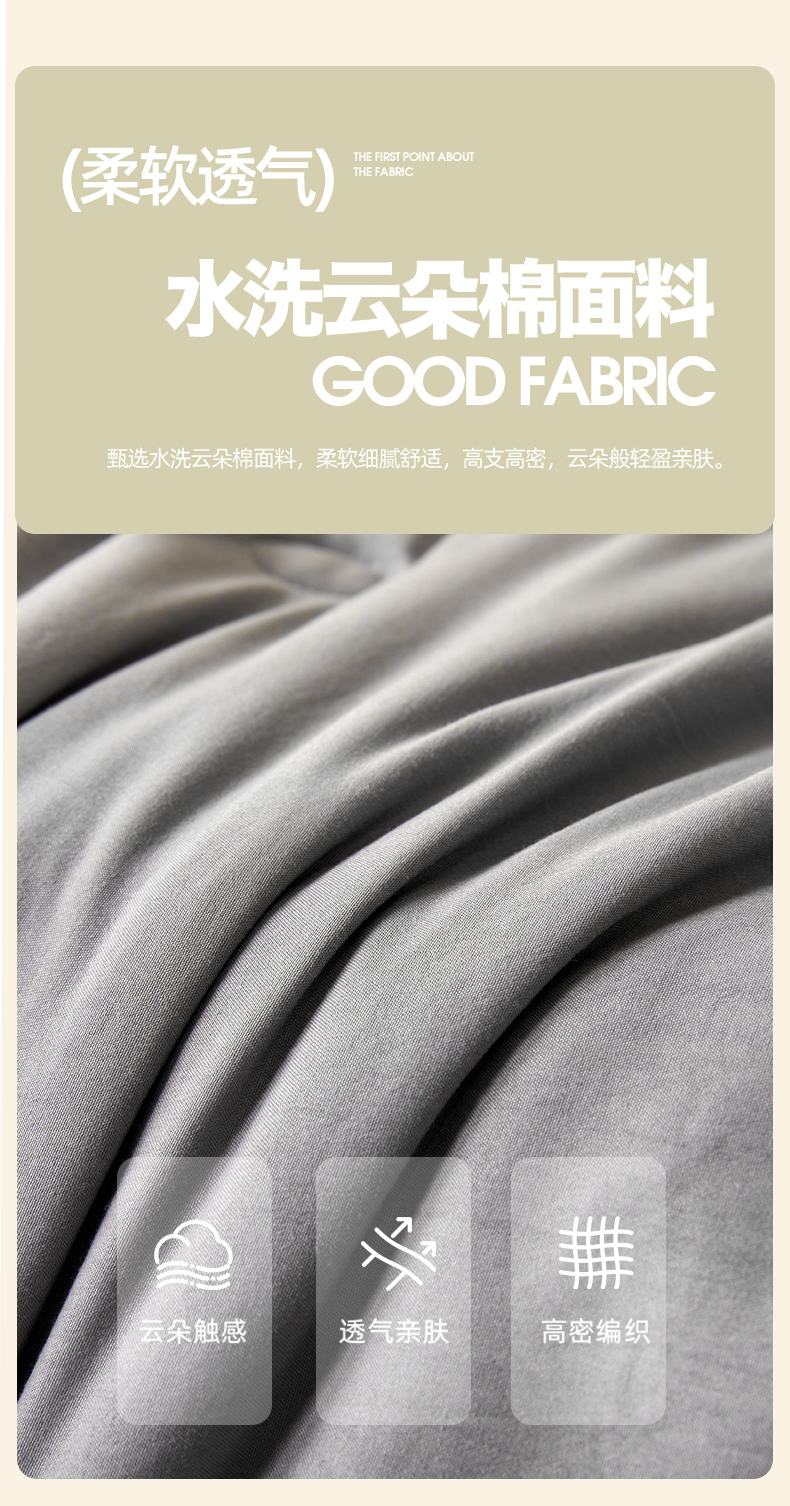• 91家纺网 家纺一手货源 找家纺 卡斯诺家纺馆 2026新款水洗棉棉花夏被四件套 浅灰深灰