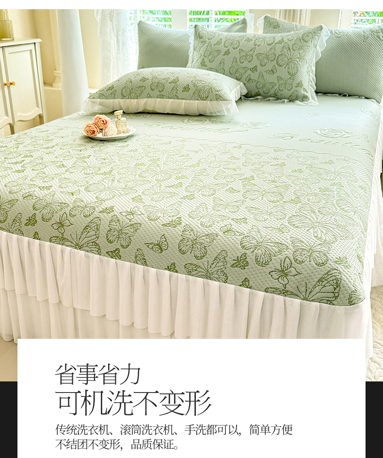 商品名称:绒棉世家 2026新款A类凉感豆豆席三件套床裙款软席子 蝶舞-清新绿