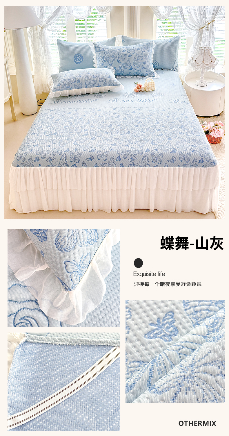 (总)优贝家纺 2026新款A类凉感豆豆席三件套床裙款软席子,蝶舞-清新绿,花韵-天蓝,花韵-粉玉,花韵-清新绿,花韵-山灰,蝶舞-粉玉,蝶舞-山灰,蝶舞-天蓝