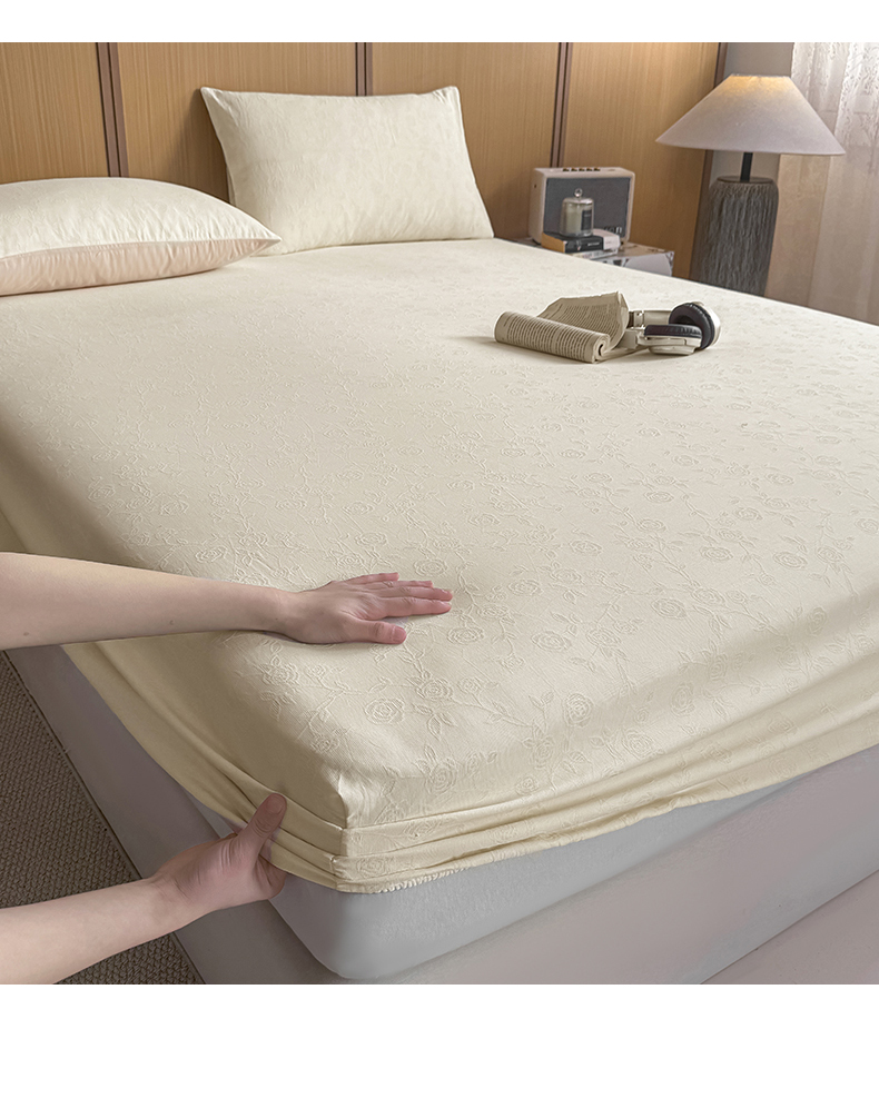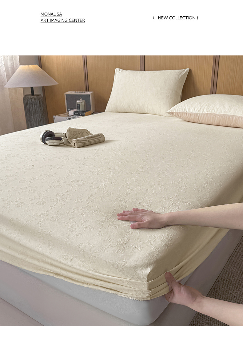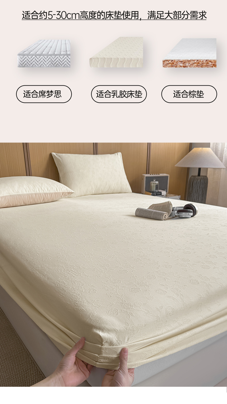 灰鲸 2026新款全棉纯棉三层纱色织提花床笠单品床笠床笠单件 蔷薇-杏仁奶霜