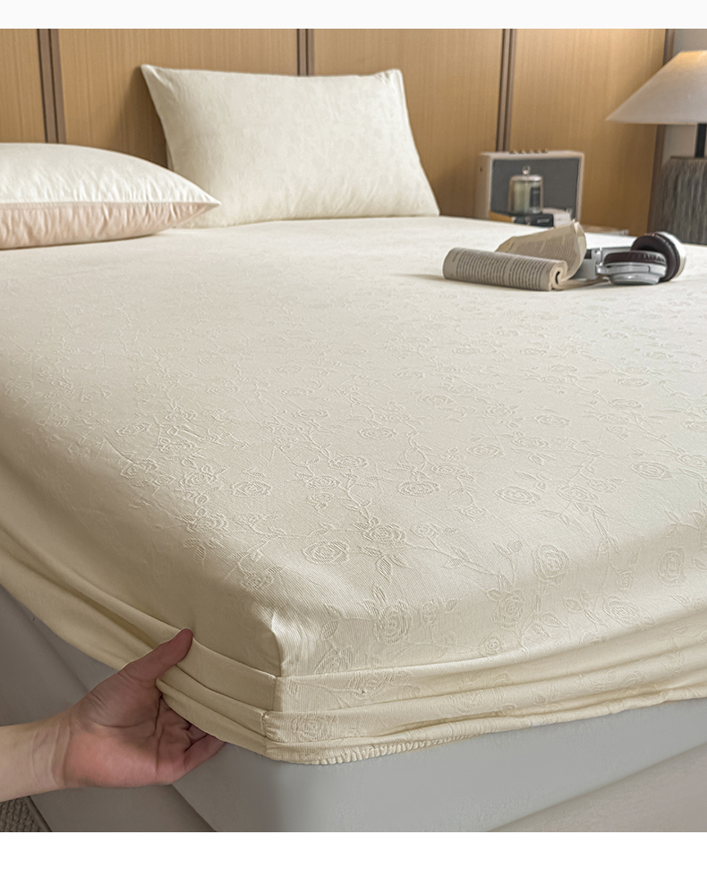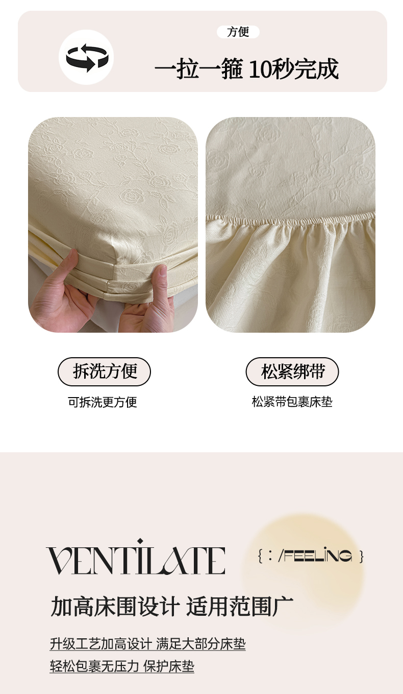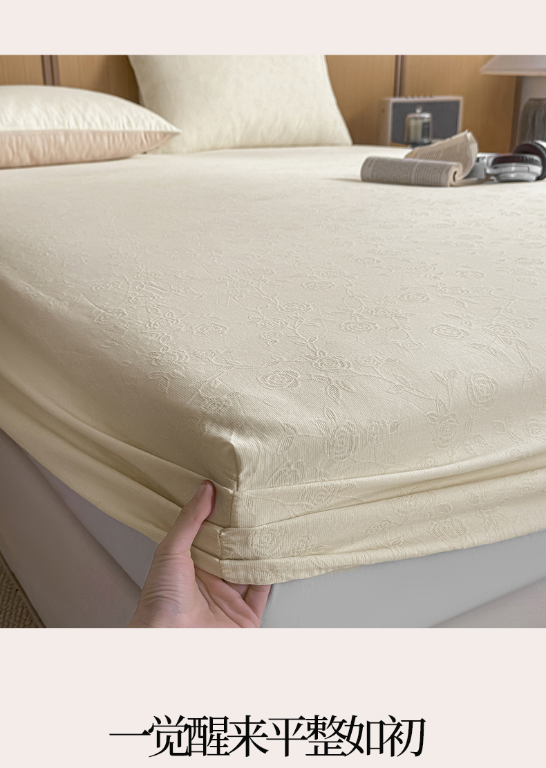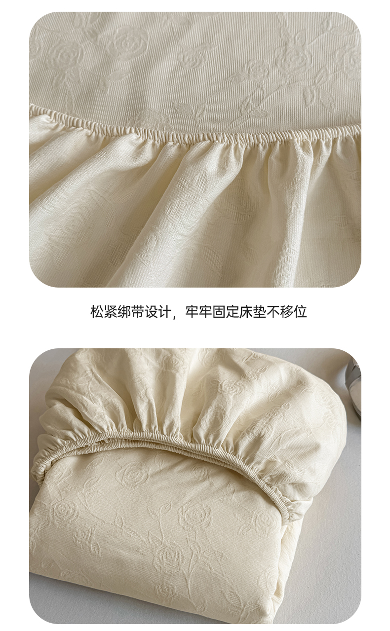 • 91家纺网 家纺一手货源 找家纺 灰鲸 2026新款全棉纯棉三层纱色织提花床笠单品床笠床笠单件 蔷薇-杏仁奶霜