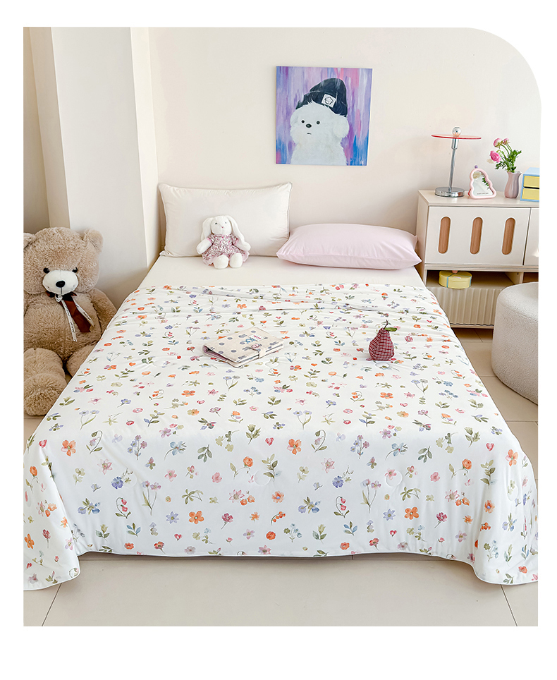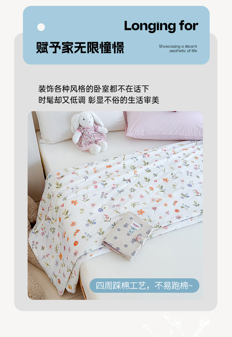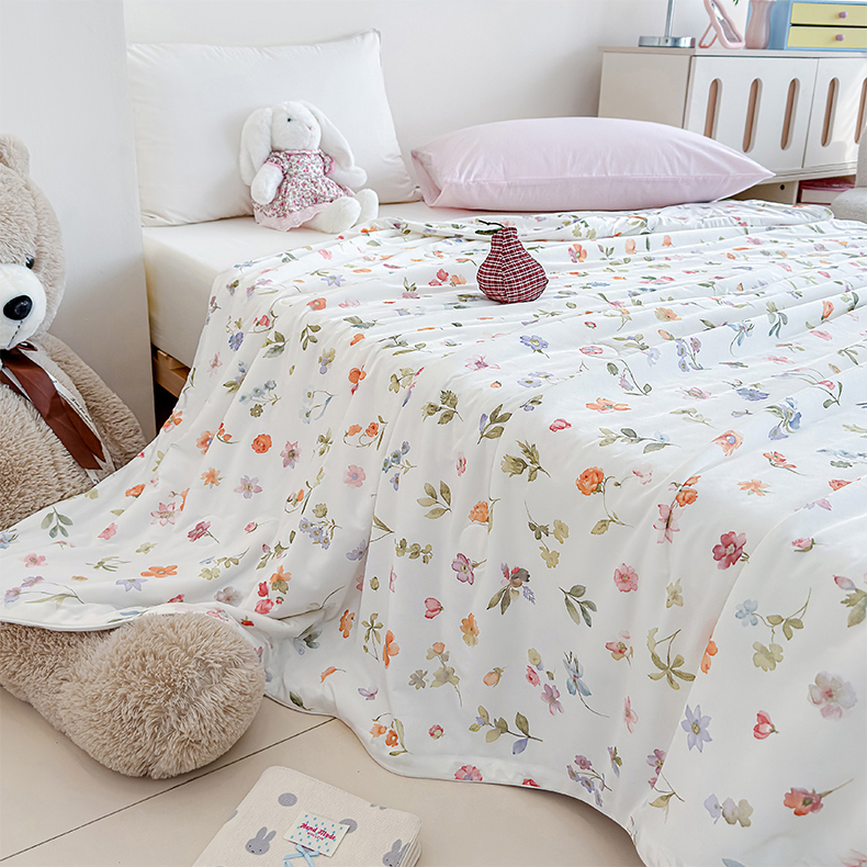 商品名称:芯恋家居 2026年新款小冰川凉感夏被冰皮凉感印花夏被凉感丝夏被(四周踩棉工艺) 梨落繁花