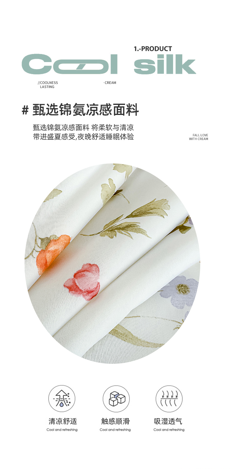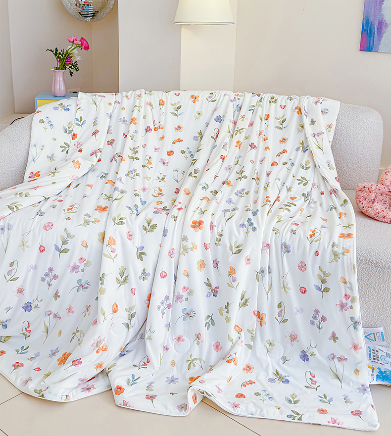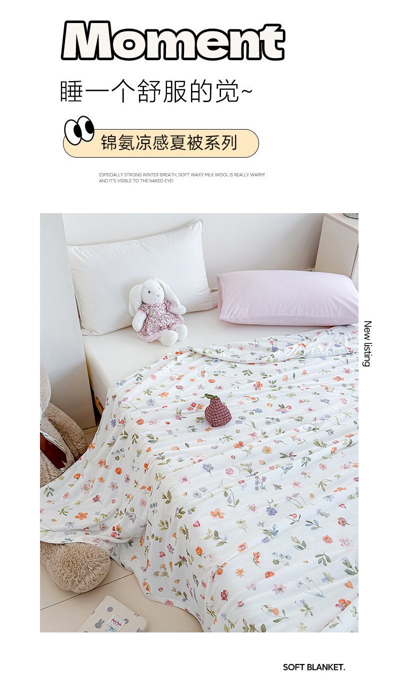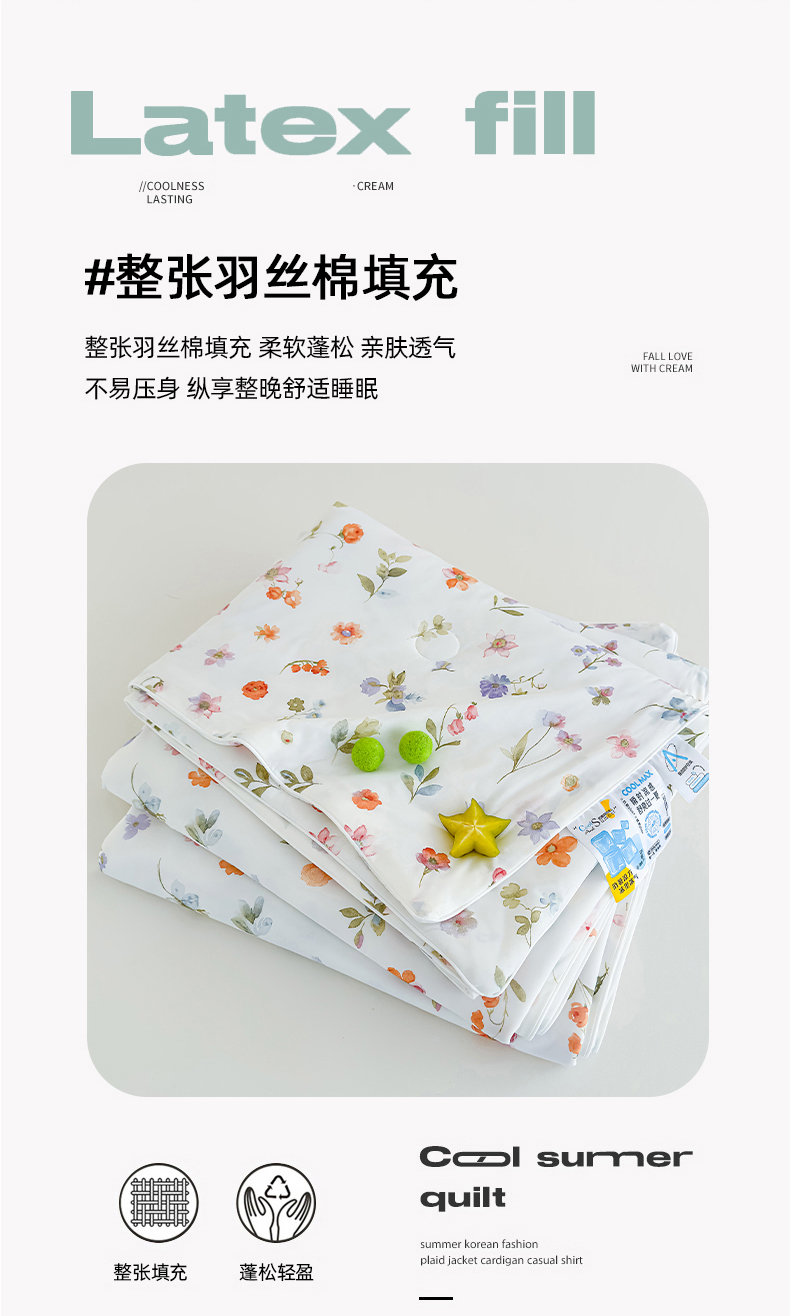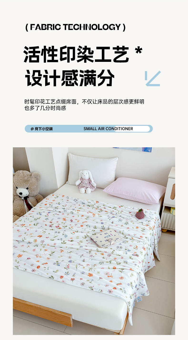 芯恋家居 2026年新款小冰川凉感夏被冰皮凉感印花夏被凉感丝夏被(四周踩棉工艺) 梨落繁花