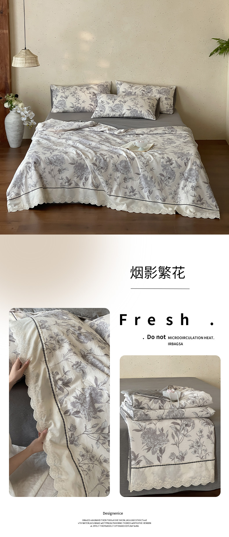 (总)一加一 2026新款复古碎花双层纱大豆夏被夏凉被空调被-纱边花眠,暗香,芬芳,花团锦簇,盛夏,叶影,绽放