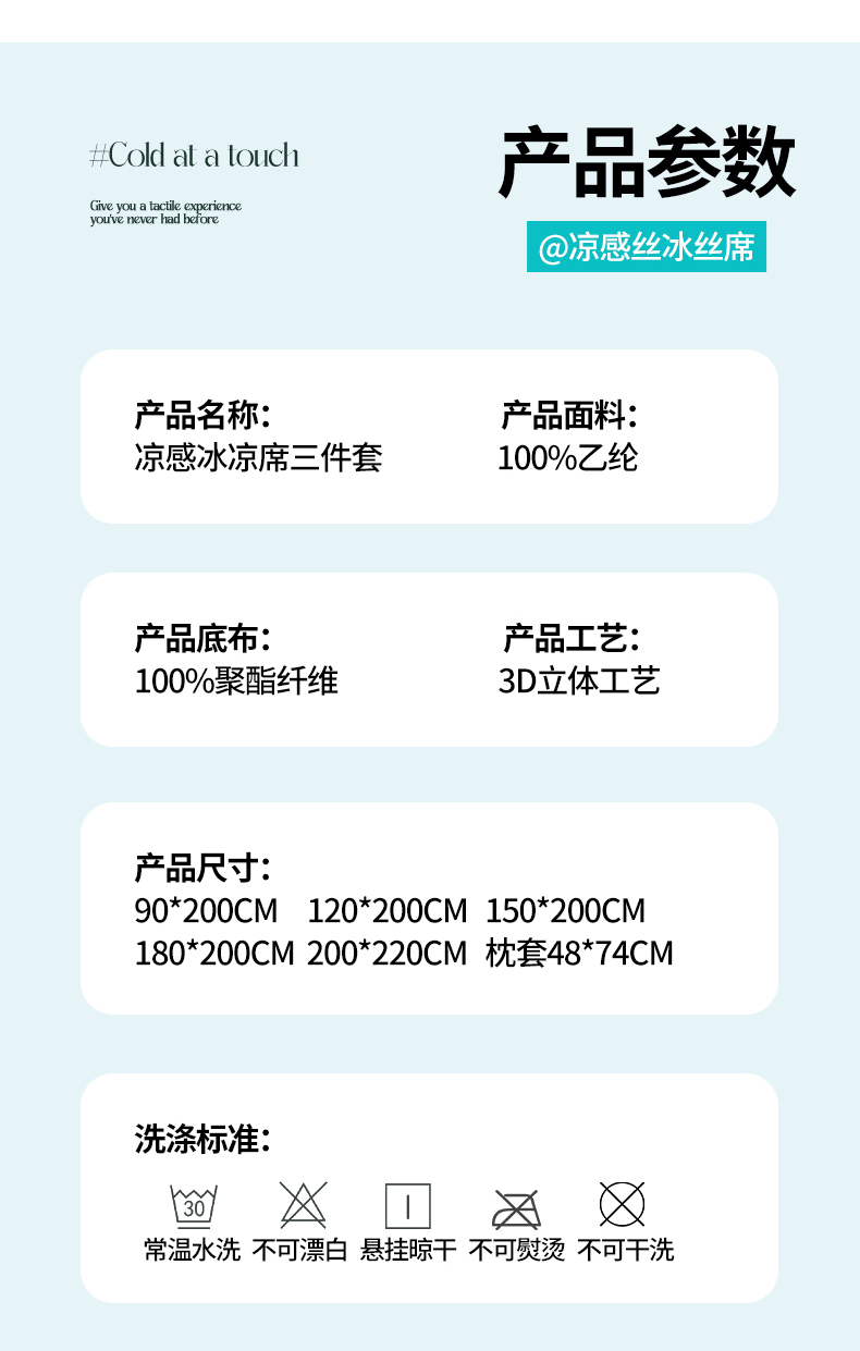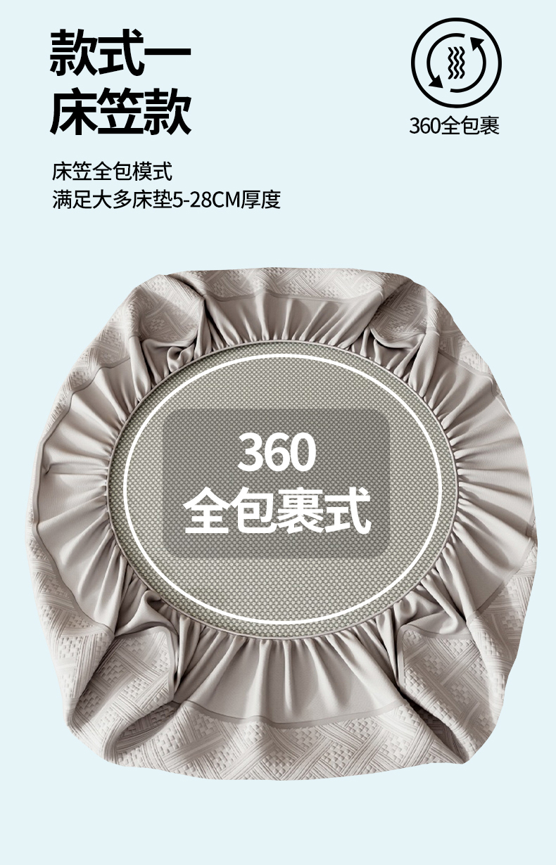 宜派家纺 2026新款PE凉感冰丝席三件套-床笠款 织序 -灰