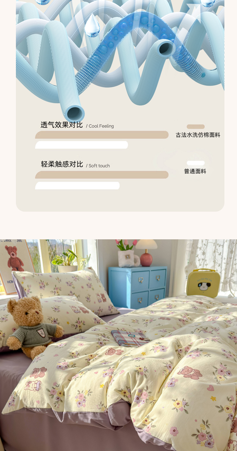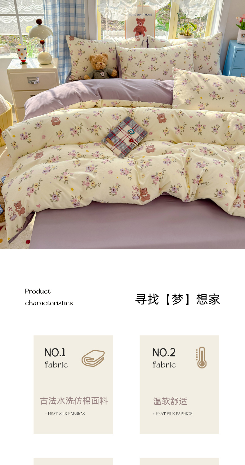 (总)铺尚美家纺 2026新款A类古法水洗仿棉云感纱四件套,萌兔小熊,安娜,波点熊,布丁狗,草莓啵啵,草莓熊-粉,草莓熊-蓝,丁香紫,格纹萌友团,格子熊,狗狗乐园,乖乖狗-灰,乖乖狗-玉,花园小猫,猫狗狂欢夜,玫瑰庄园,莫兰迪,奶绿牛油果,蔷薇花语,条纹小熊,小马星河,小奶团,星芒啵啵熊,雪花世界,英伦小木马,紫罗兰