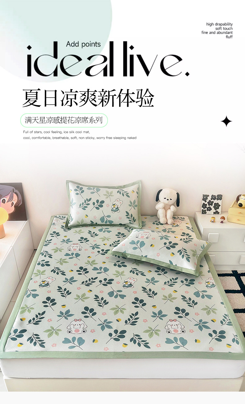 倾慕家纺 2026新款A类满天星提花凉感凉席系列 叶小兔