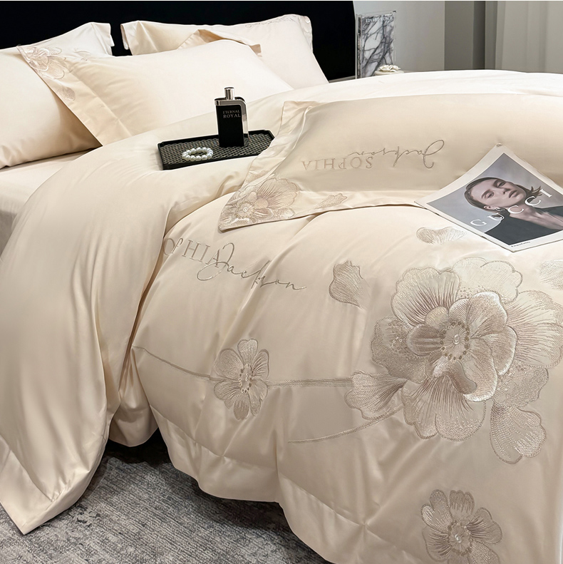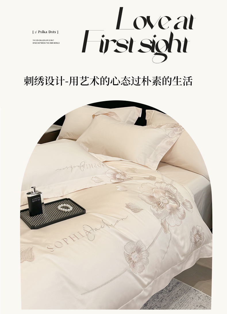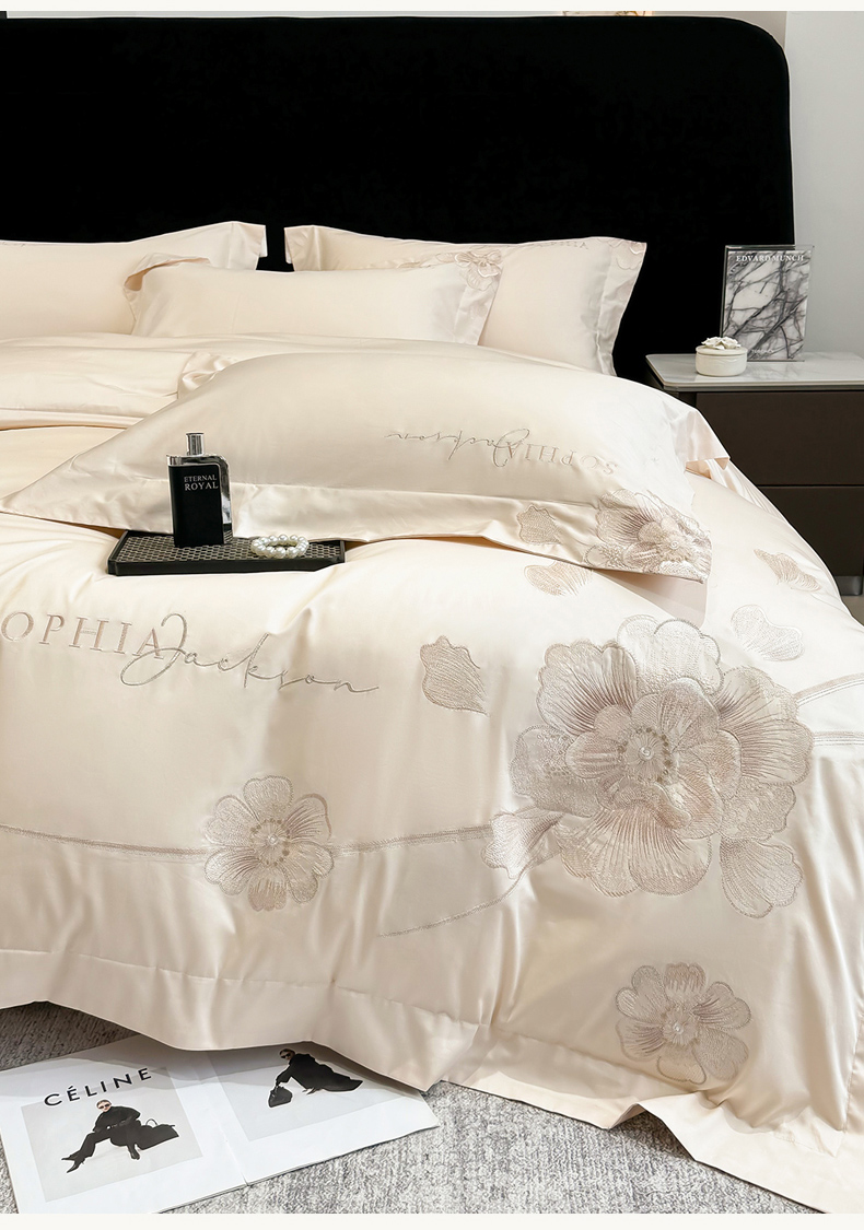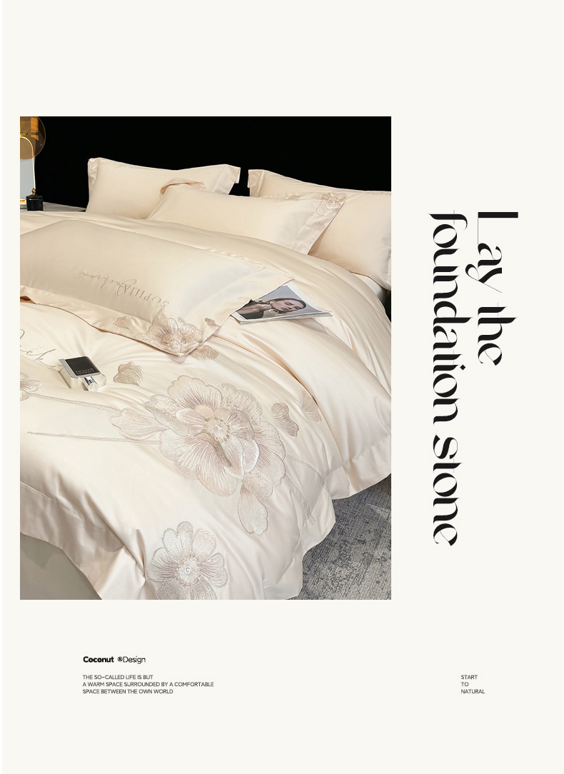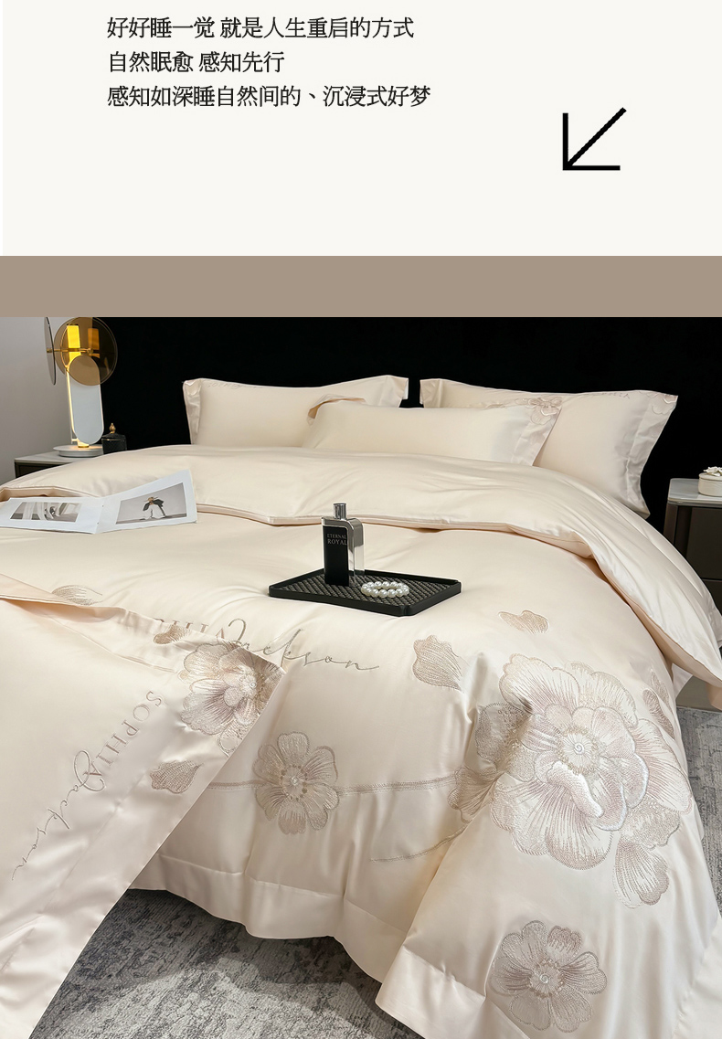 (总)星蕴家纺 2026新款双股长绒棉全棉纯棉刺绣四件套-柏林系列,柏林 贵族白,柏林 星空灰,柏林 云山蓝,柏林 香槟金,柏林 可可粉