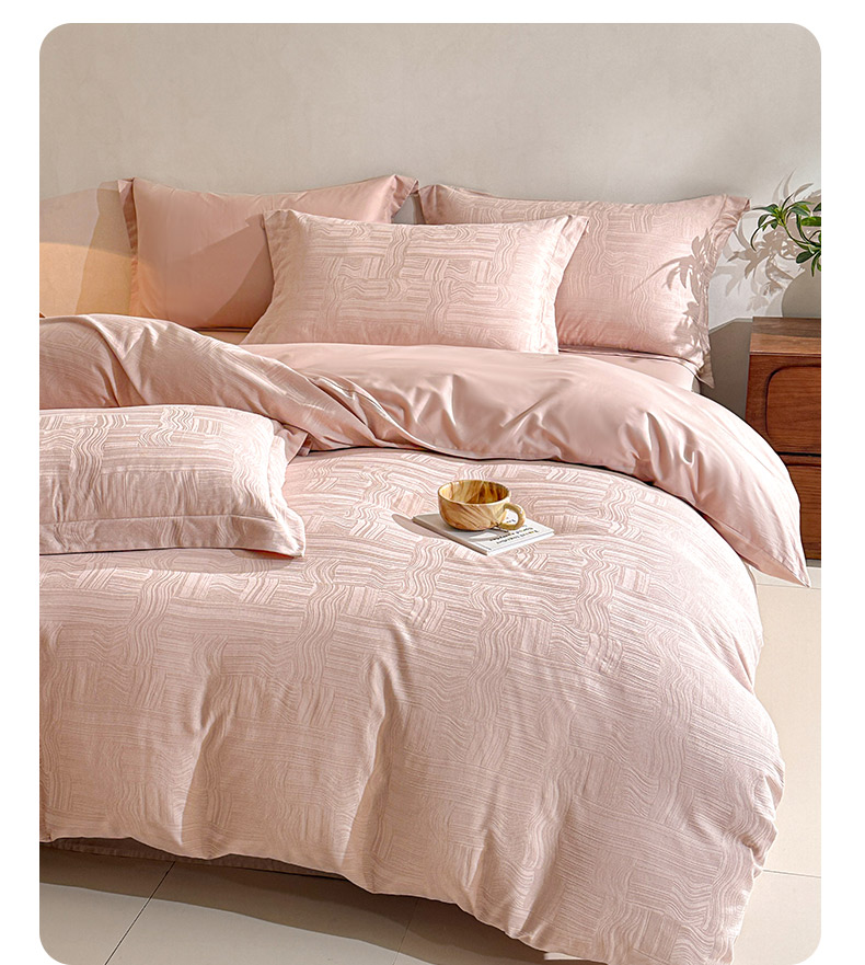 当前位置: 91家纺网 > 商品网购 > 床品套件 > 四件套 > 长绒棉四件套 > 泽西家纺+V17798841158发大图 2026新品60长绒棉提花立体浮雕全棉纯棉四件套-云涧奢影系列 余弦-奢灰