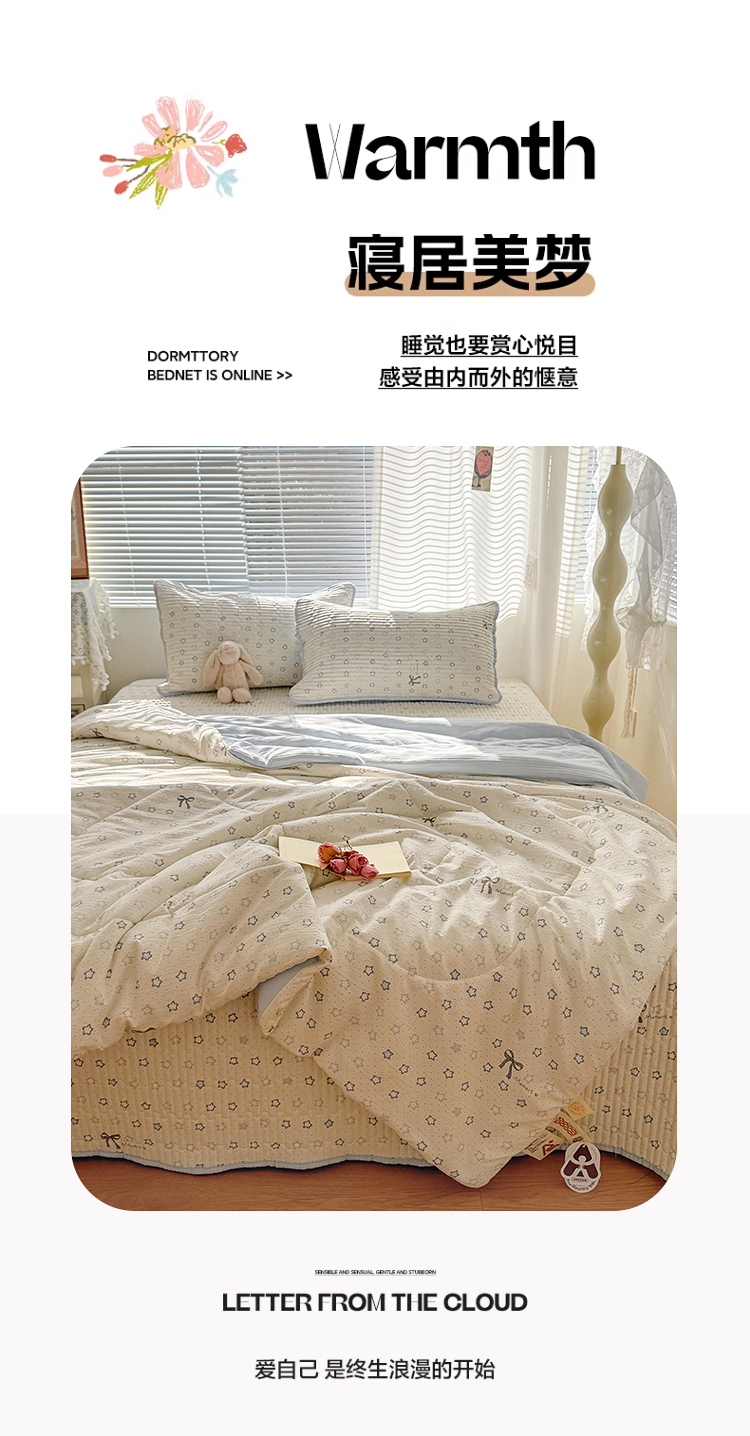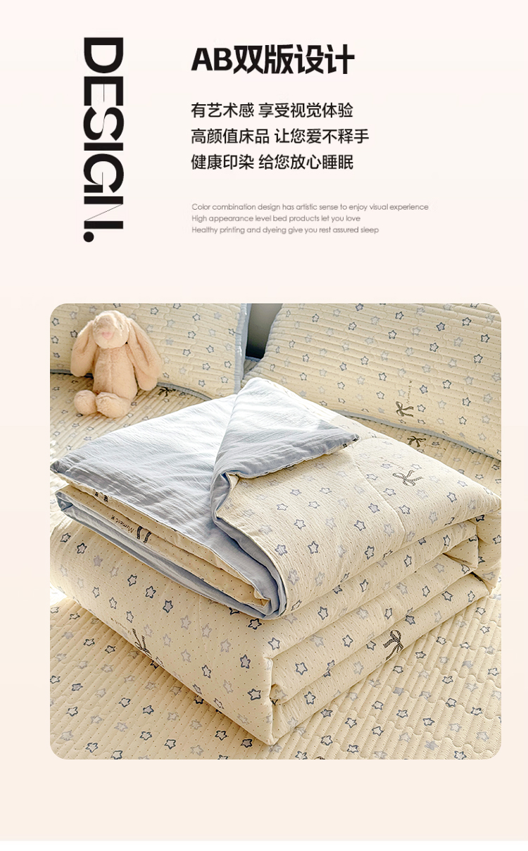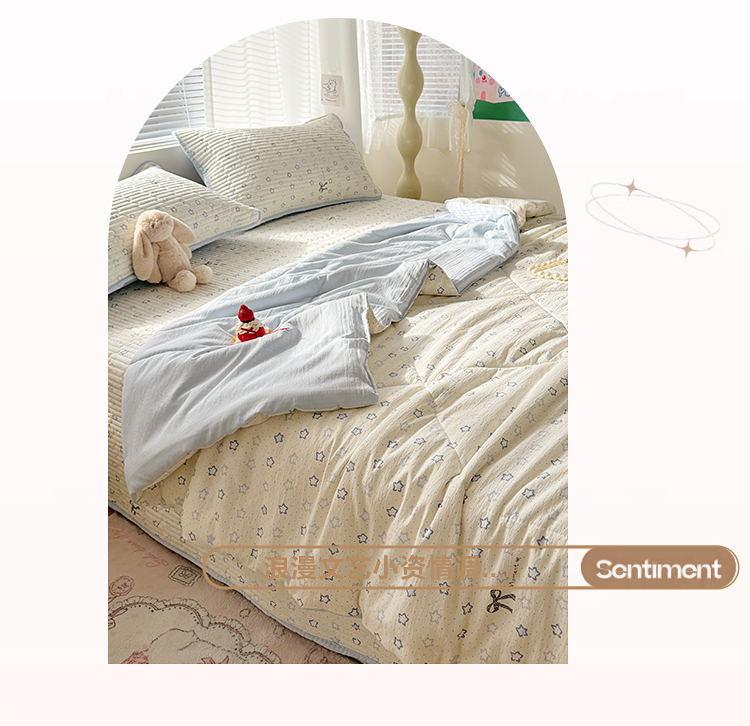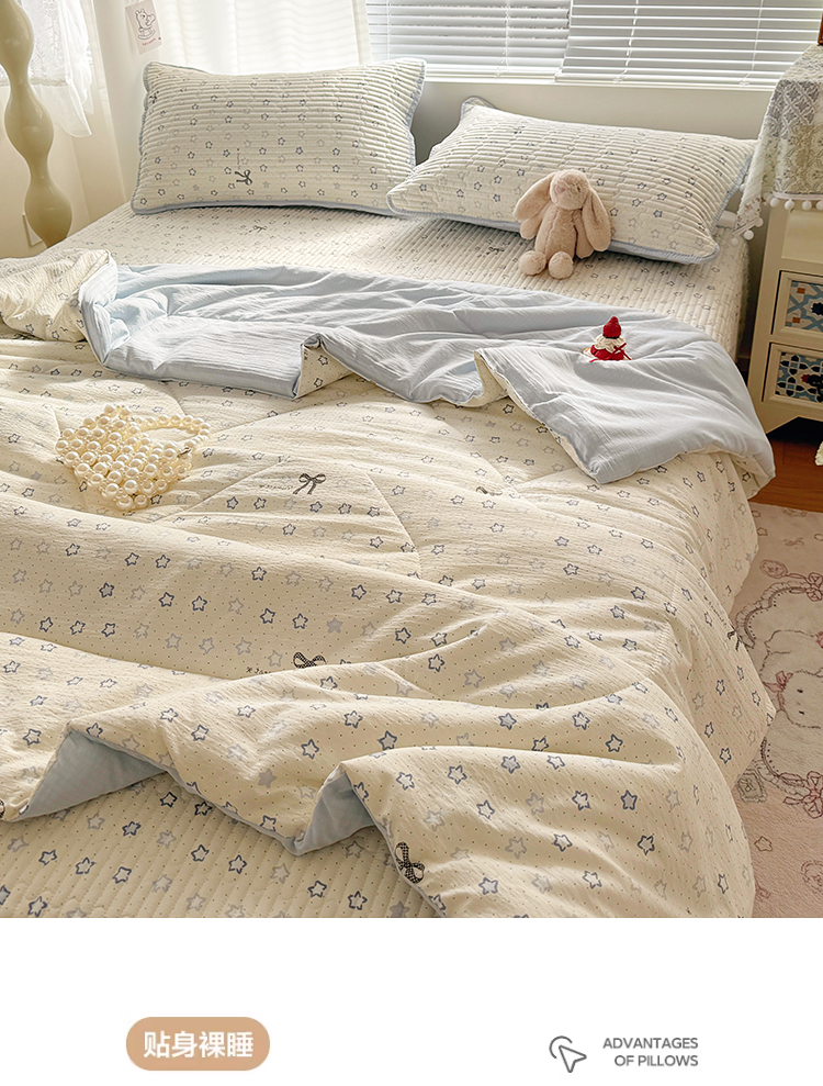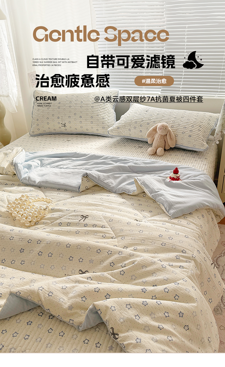 当前位置: 91家纺网 > 商品网购 > 床品套件 > 四件套 > 夏被四件套 > 玉海棠家纺 2026新款A类云感双层纱7A抗菌夏被夏凉被空调被四件套 蓝色星星