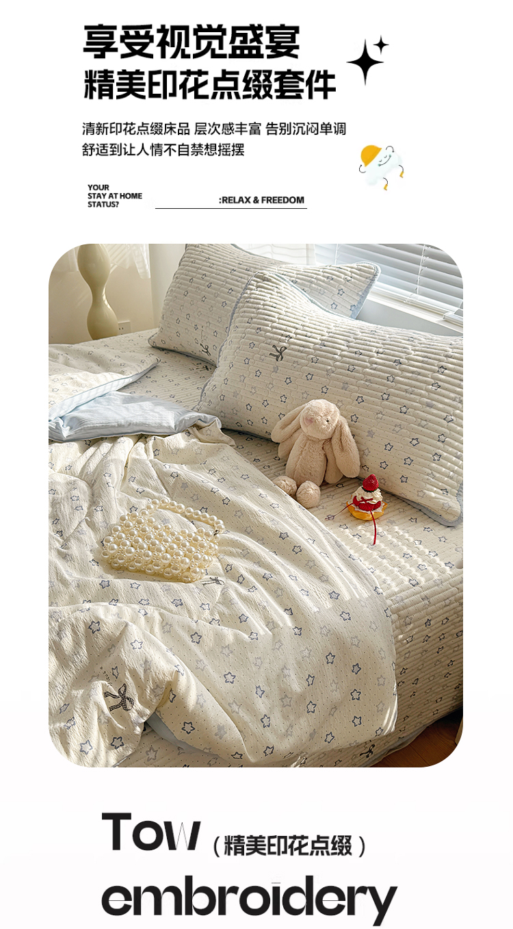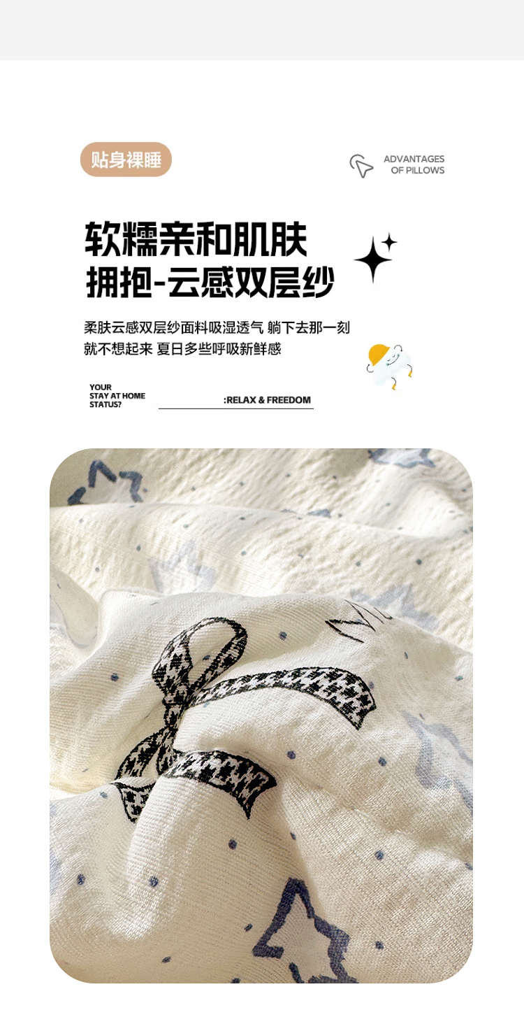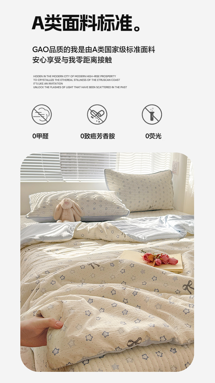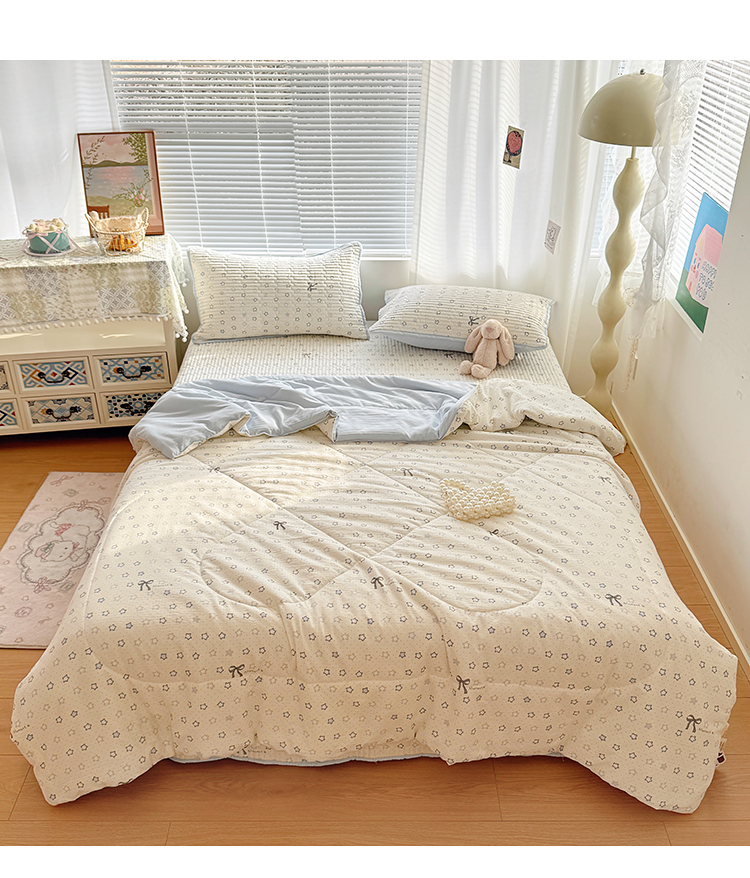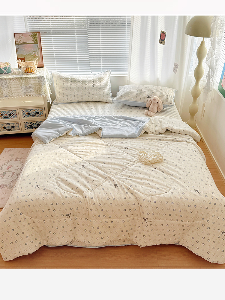 当前位置: 91家纺网 > 商品网购 > 床品套件 > 四件套 > 夏被四件套 > 玉海棠家纺 2026新款A类云感双层纱7A抗菌夏被夏凉被空调被四件套 蓝色星星