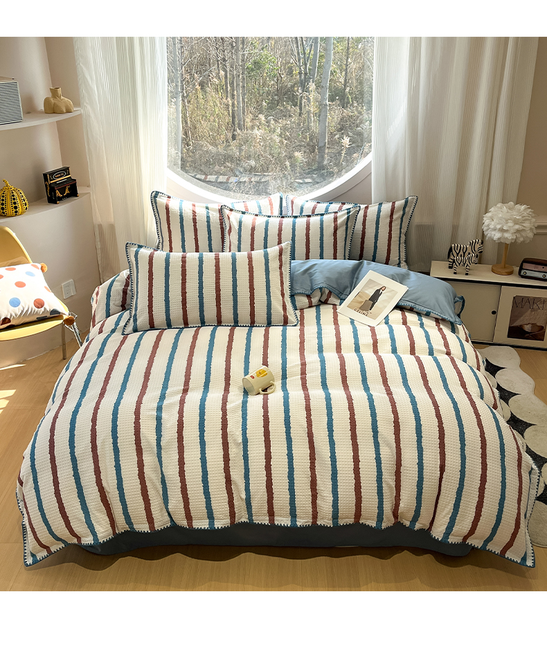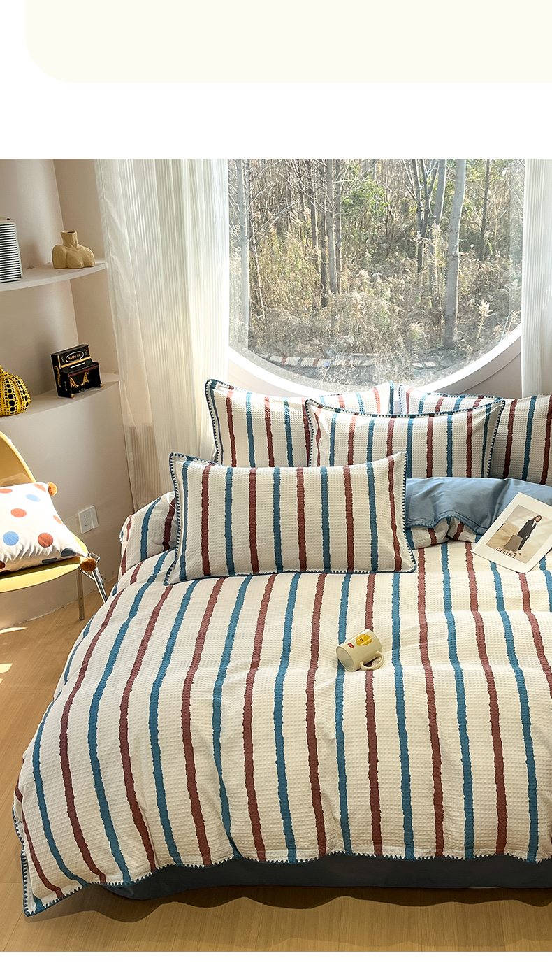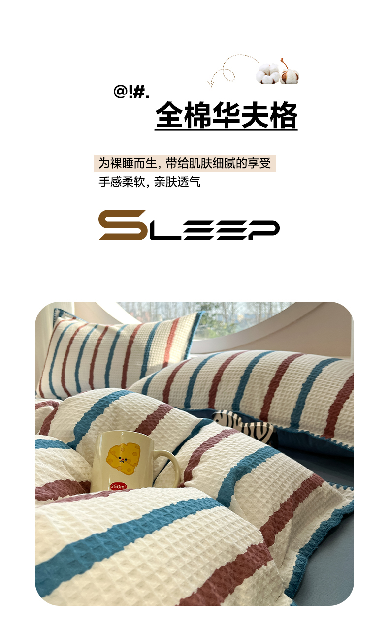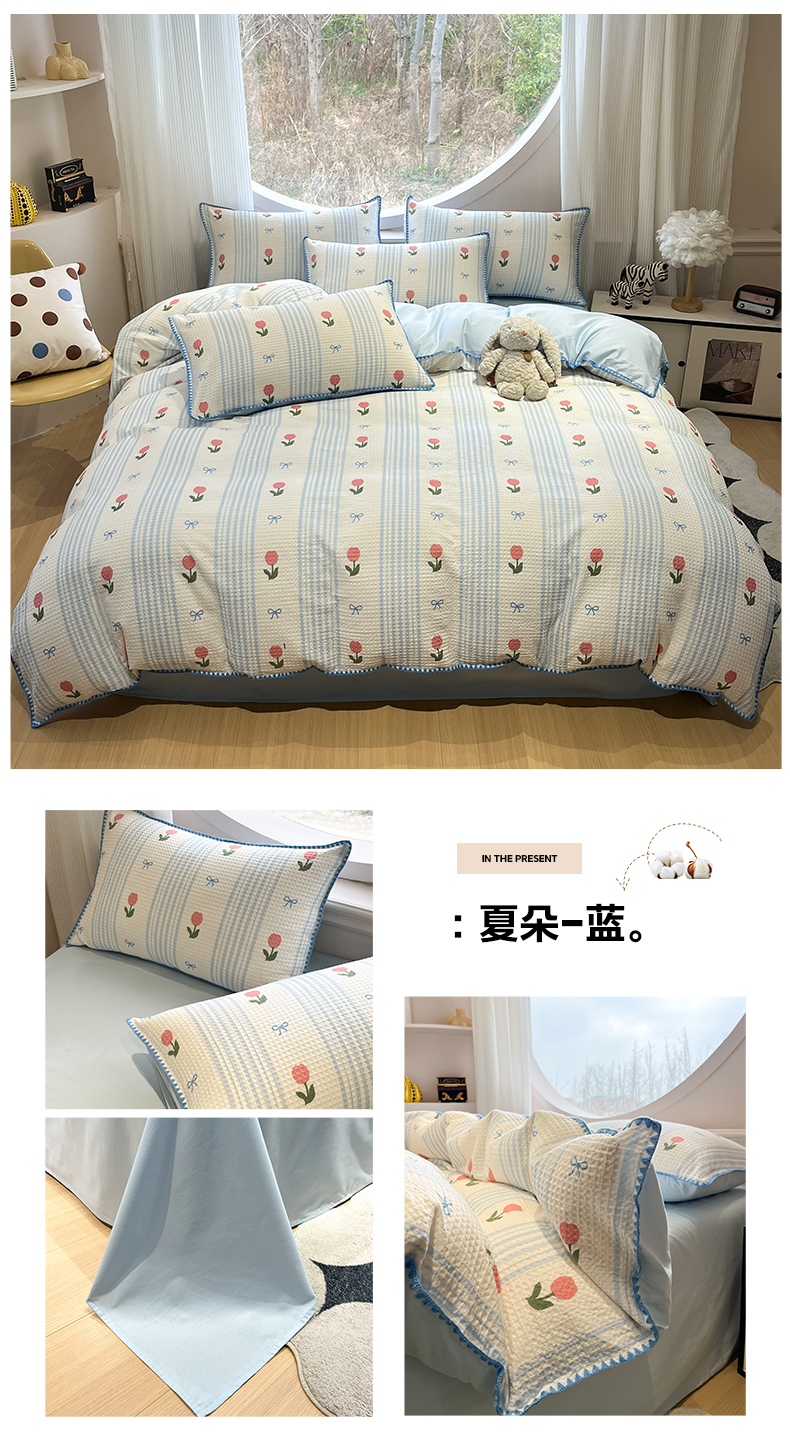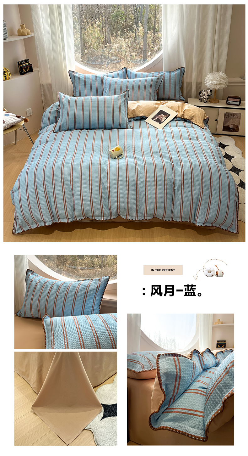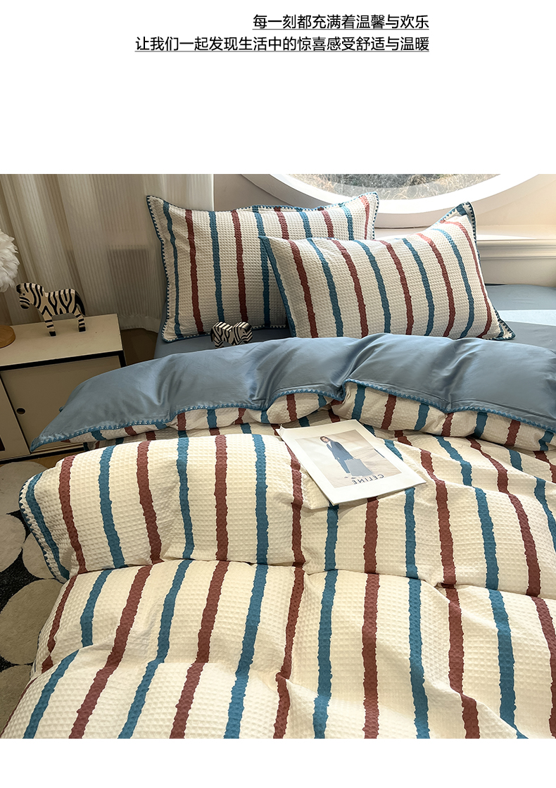 当前位置: 91家纺网 > 商品网购 > 床品套件 > 四件套 > 全棉普通四件套 > 如一 2026春夏新款全棉纯棉华夫格印花三角针工艺四件套 海盐-蓝