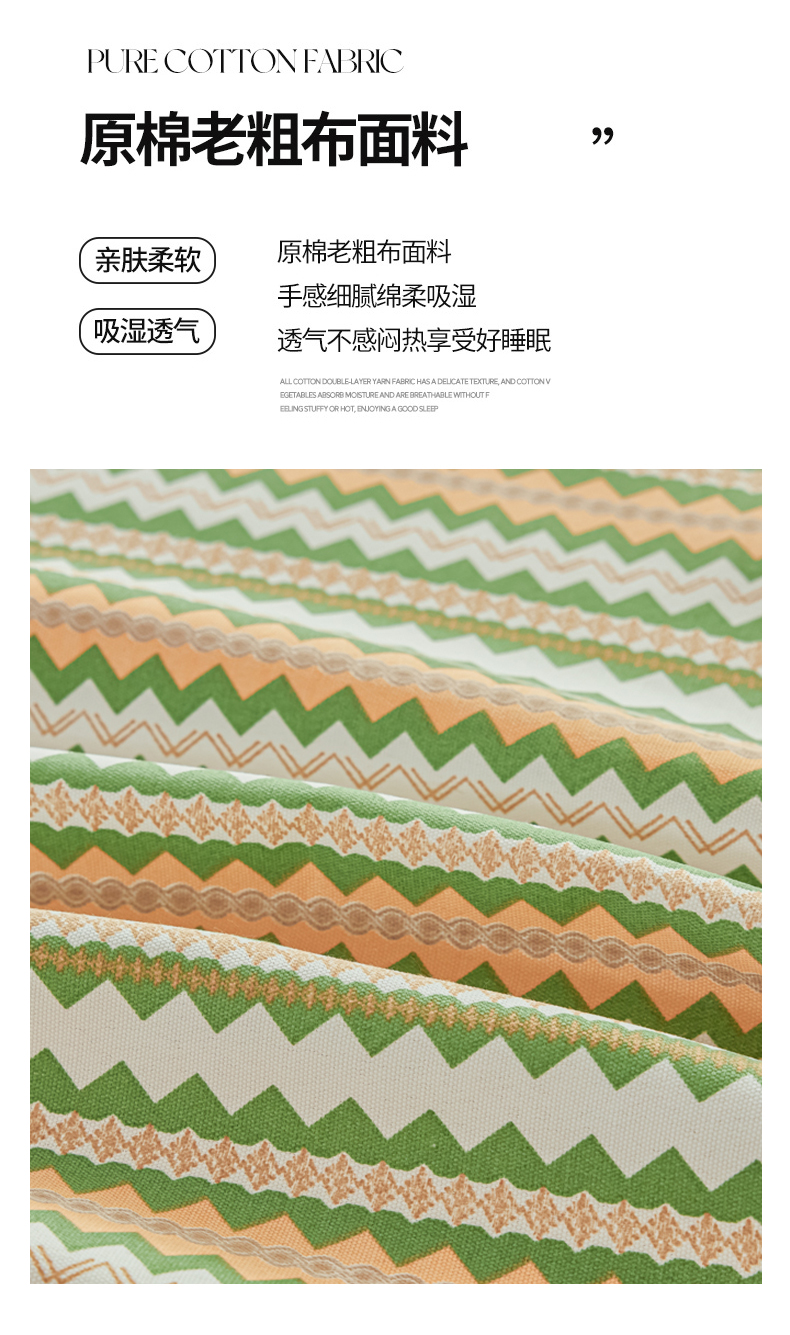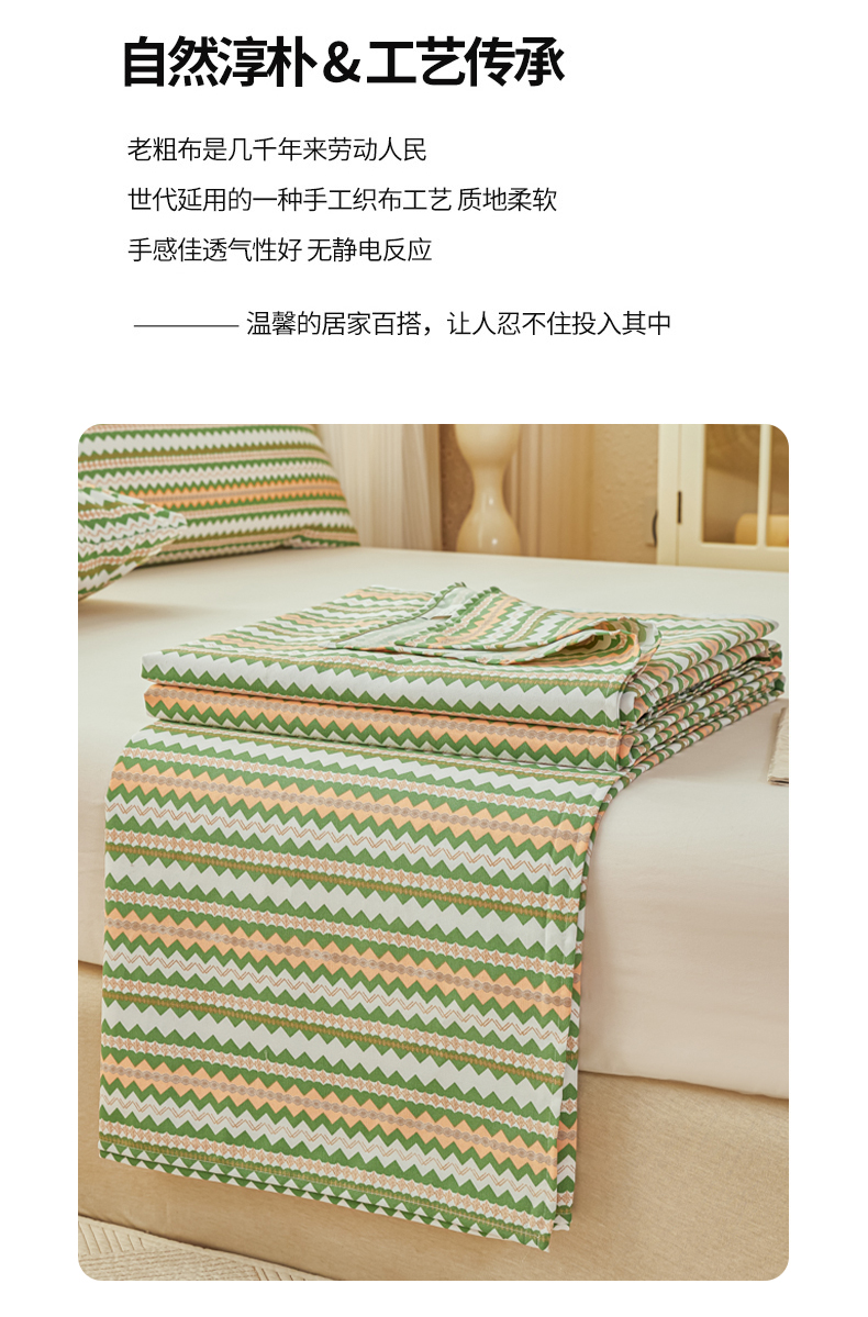 • 91家纺网 家纺一手货源 找家纺 爱彼家纺 2026新款原棉老粗布透气印花床单单件热门摩洛小狗热门新升级-细沙老粗布 新向往条绿