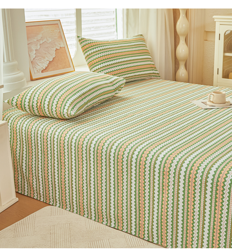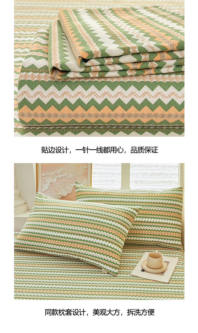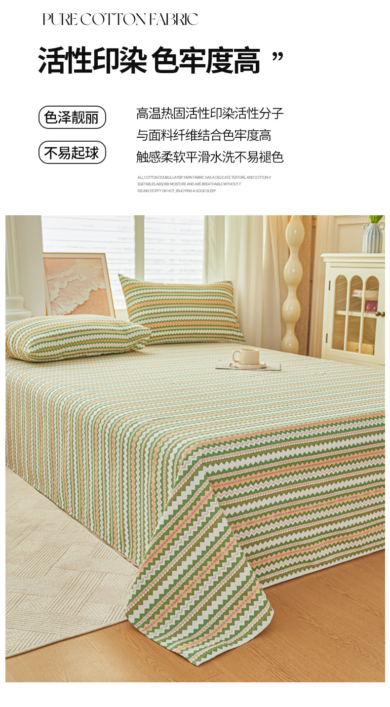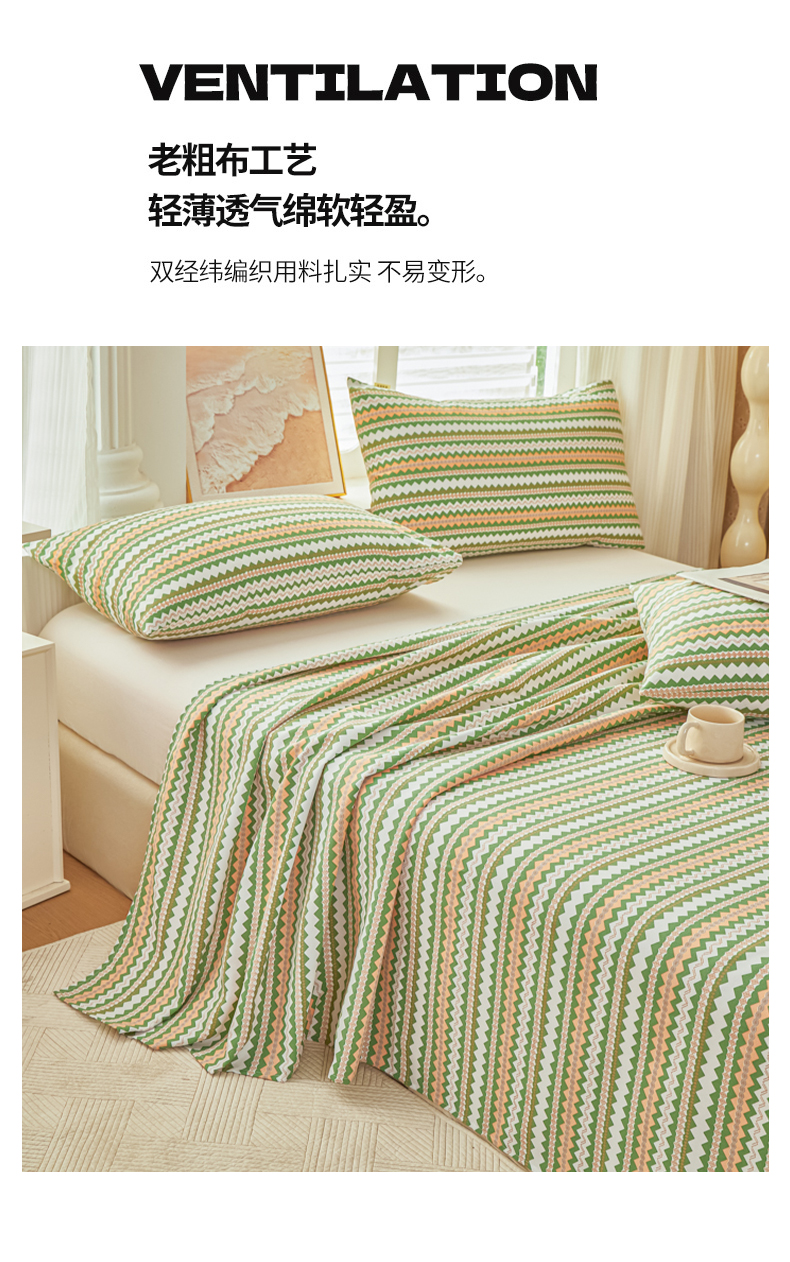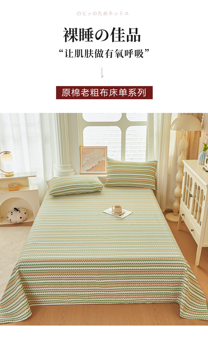 爱彼家纺 2026新款原棉老粗布透气印花床单单件热门摩洛小狗热门新升级-细沙老粗布 新向往条绿