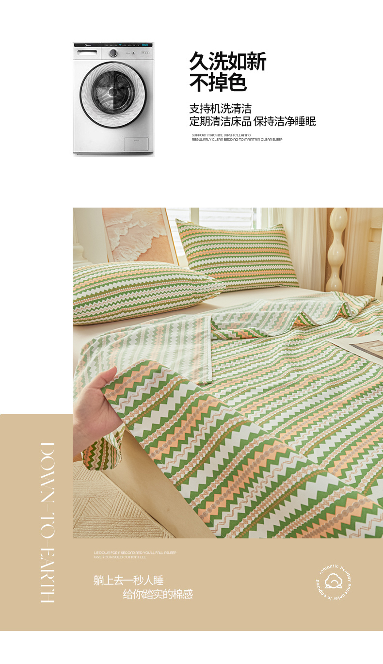 当前位置: 91家纺网 > 商品网购 > 床上用品 > 床单 > 爱彼家纺 2026新款原棉老粗布透气印花床单单件热门摩洛小狗热门新升级-细沙老粗布 新向往条绿