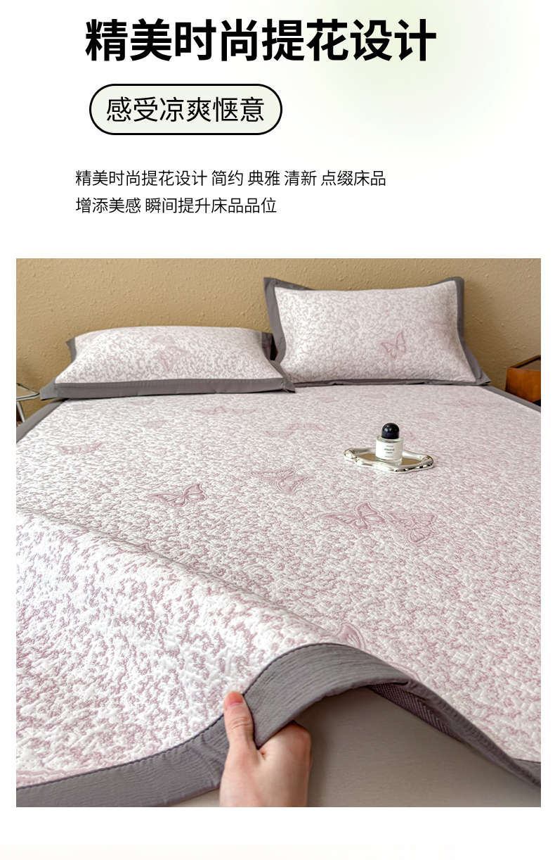 当前位置: 91家纺网 > 商品网购 > 床上用品 > 凉席 > 其他凉席 > 莱家富 2026新款公主风凉感值过0.21空调席子软席冰豆豆凉席三件套-蝴蝶蝶舞花语系列 床笠款蝶舞花语-淡蓝