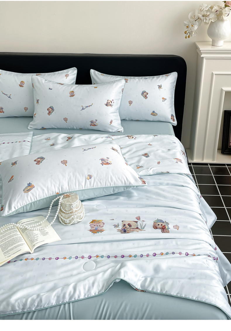 • 91家纺网 家纺一手货源 找家纺 (总)慕晨 2026新款天丝莱赛尔数码印加绣花高级简奢丝滑丝绸卡通款夏被四件套,球仔,彩蝶,甜猫,星兔,永恒