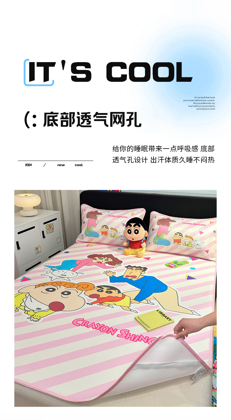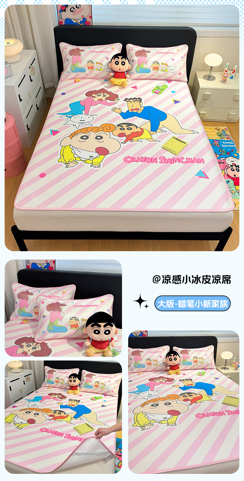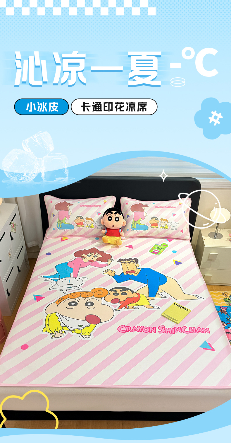• 91家纺网 家纺一手货源 找家纺 博雅 2026新款蜡笔小新正版授权小冰皮大版印花凉席-平铺款 大版-蜡笔小新家族