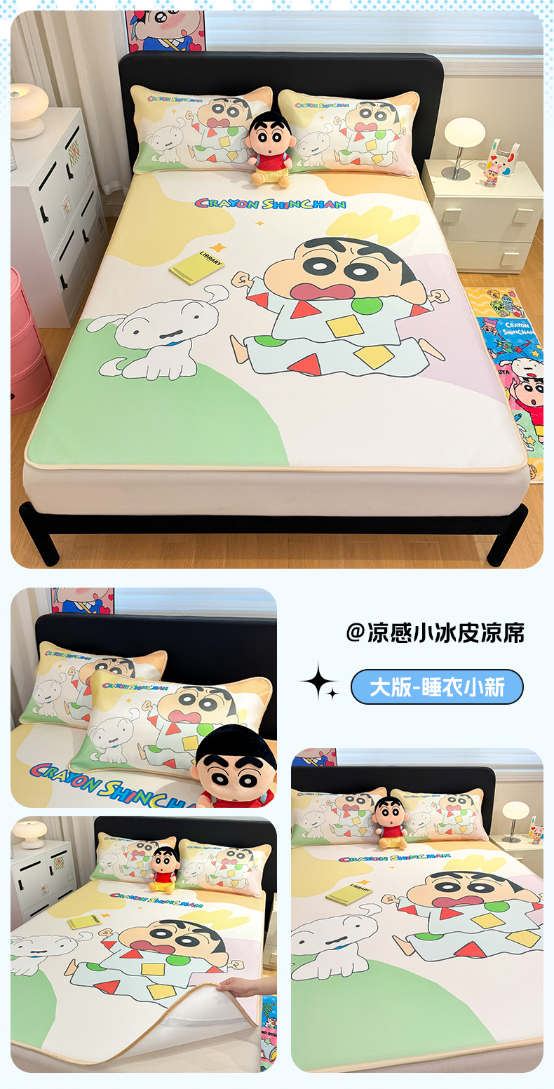 (总)博雅 2026蜡笔小新正版授权小冰皮大版印花凉席床笠款,大版-鳄鱼山小新,大版-蜡笔小新家族,大版-蓝色小新,大版-奶白格子小新,大版-睡衣小新,大版-童趣小新