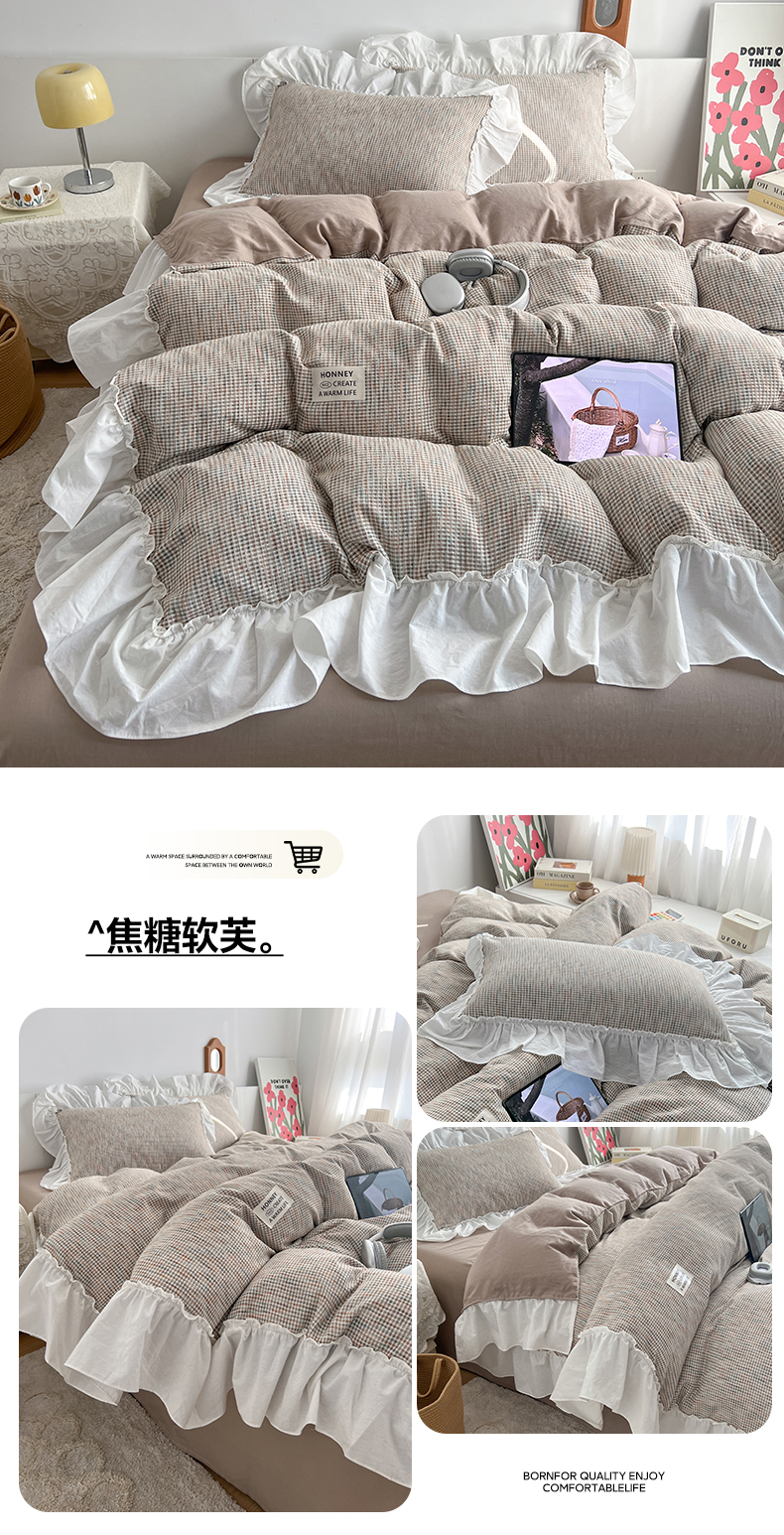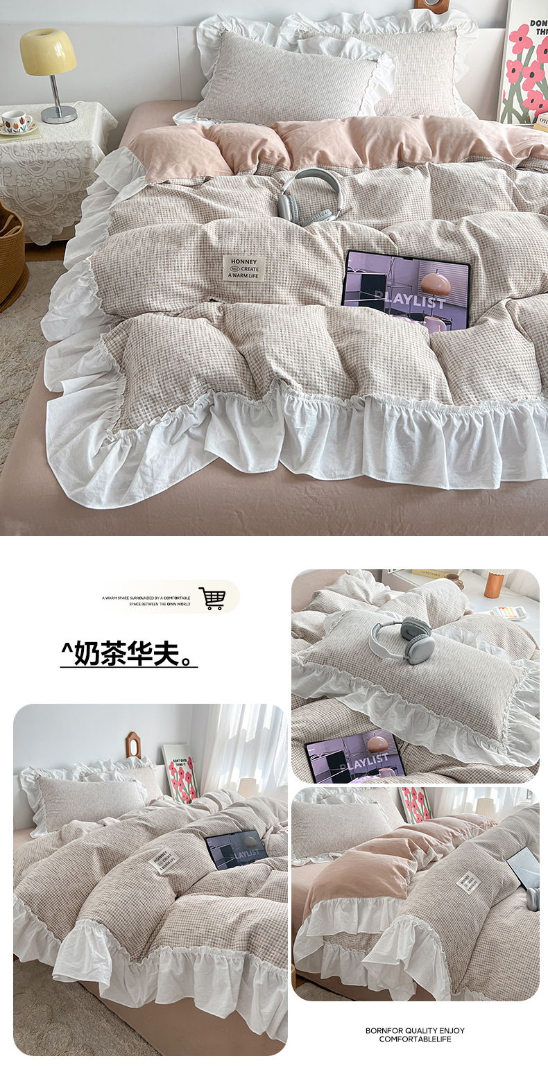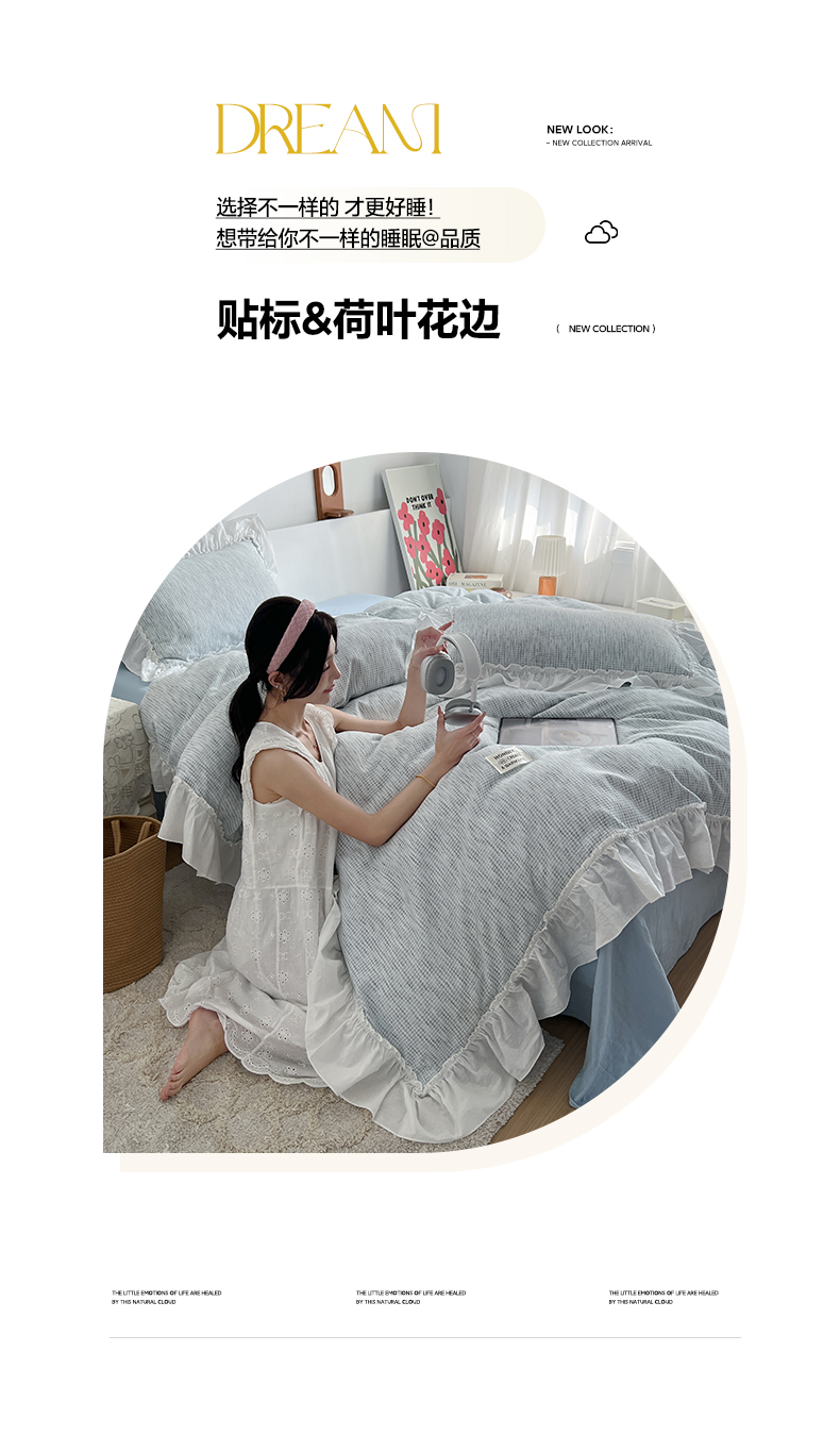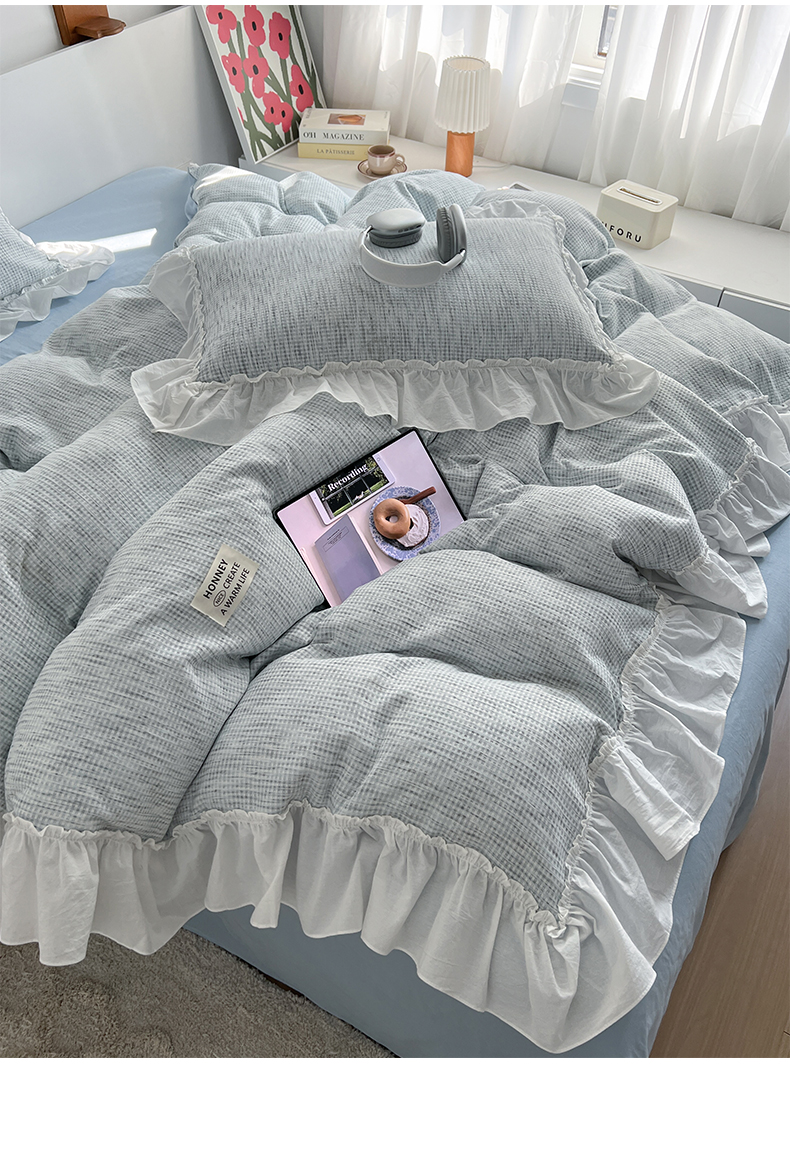 当前位置: 91家纺网 > 商品网购 > 床品套件 > 四件套 > 其它四件套 > 晨曦家纺 2026新款荷叶花边雪尼尔提花四件套可水洗棉四件套少女风 法式奶蓝