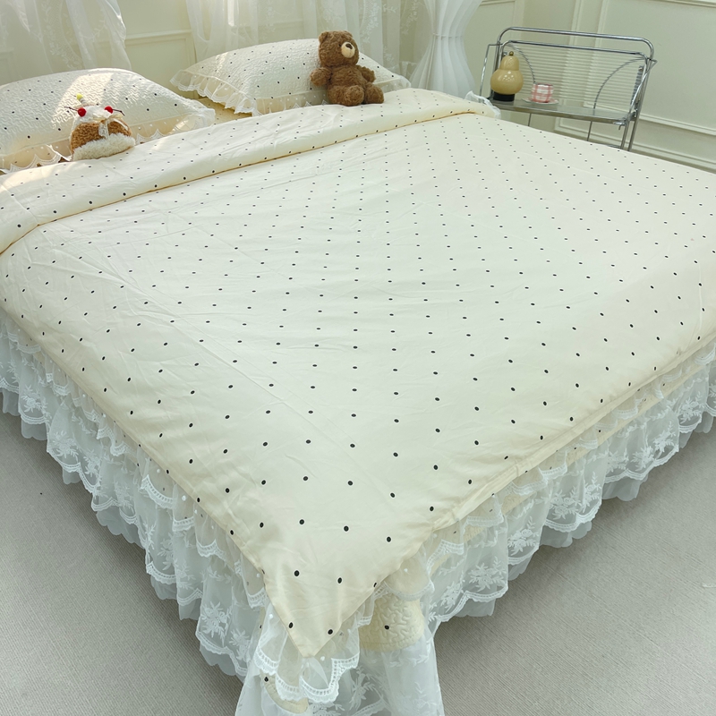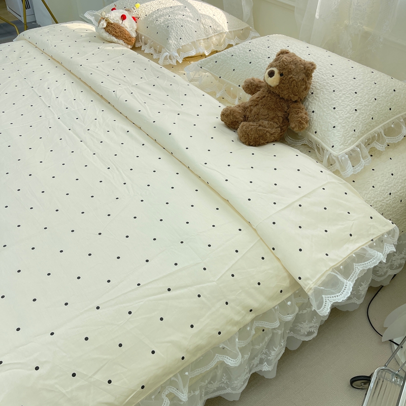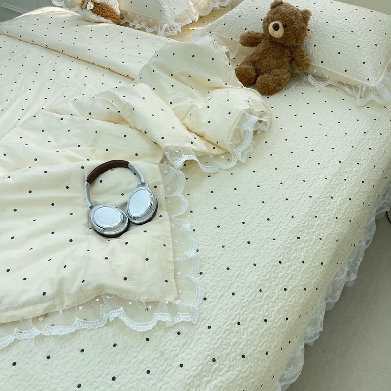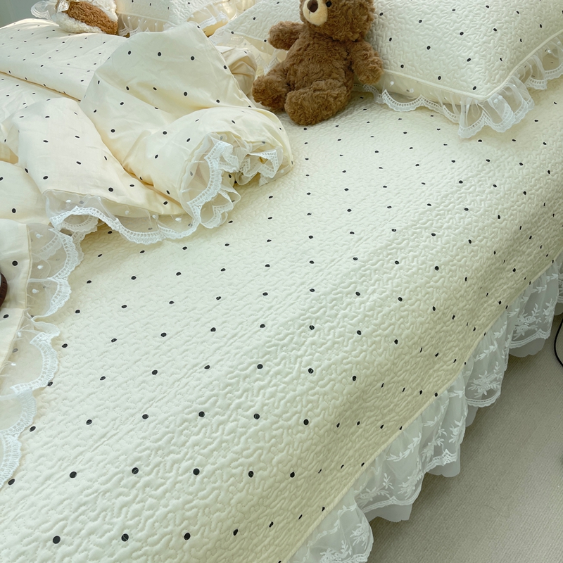 商品名称:禧瑞谷 2025新款双层花边纯棉床盖雪纺蕾丝款纯棉床盖四件套 奶茶波点
