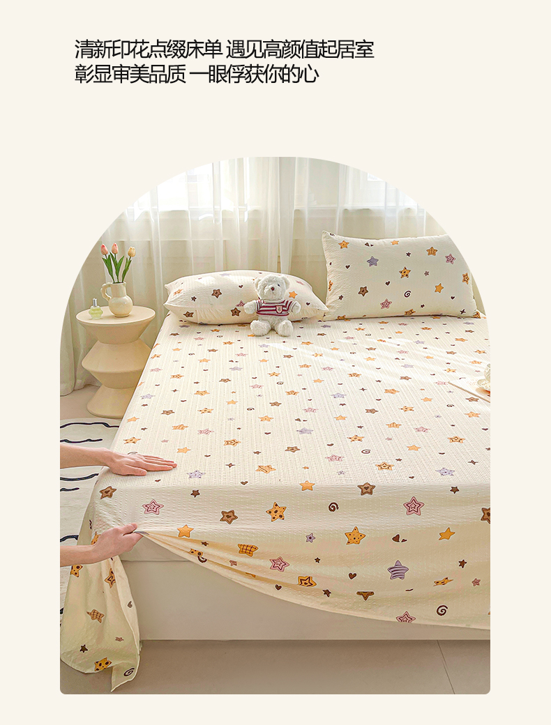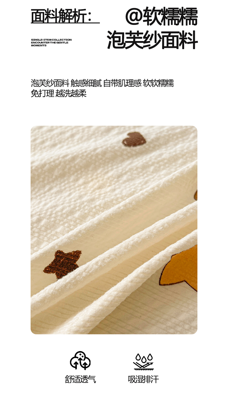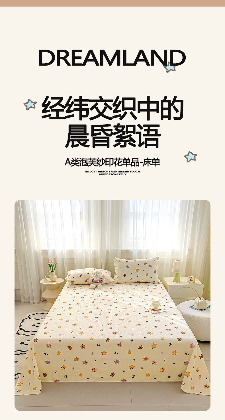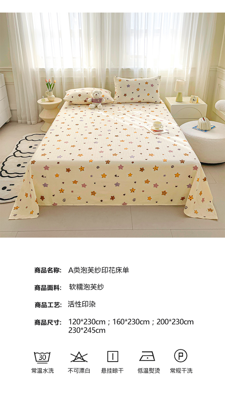 • 91家纺网 家纺一手货源 找家纺 几禾 2026新款高克重泡芙纱~印花款(单床单)-110g CD-逢星岛