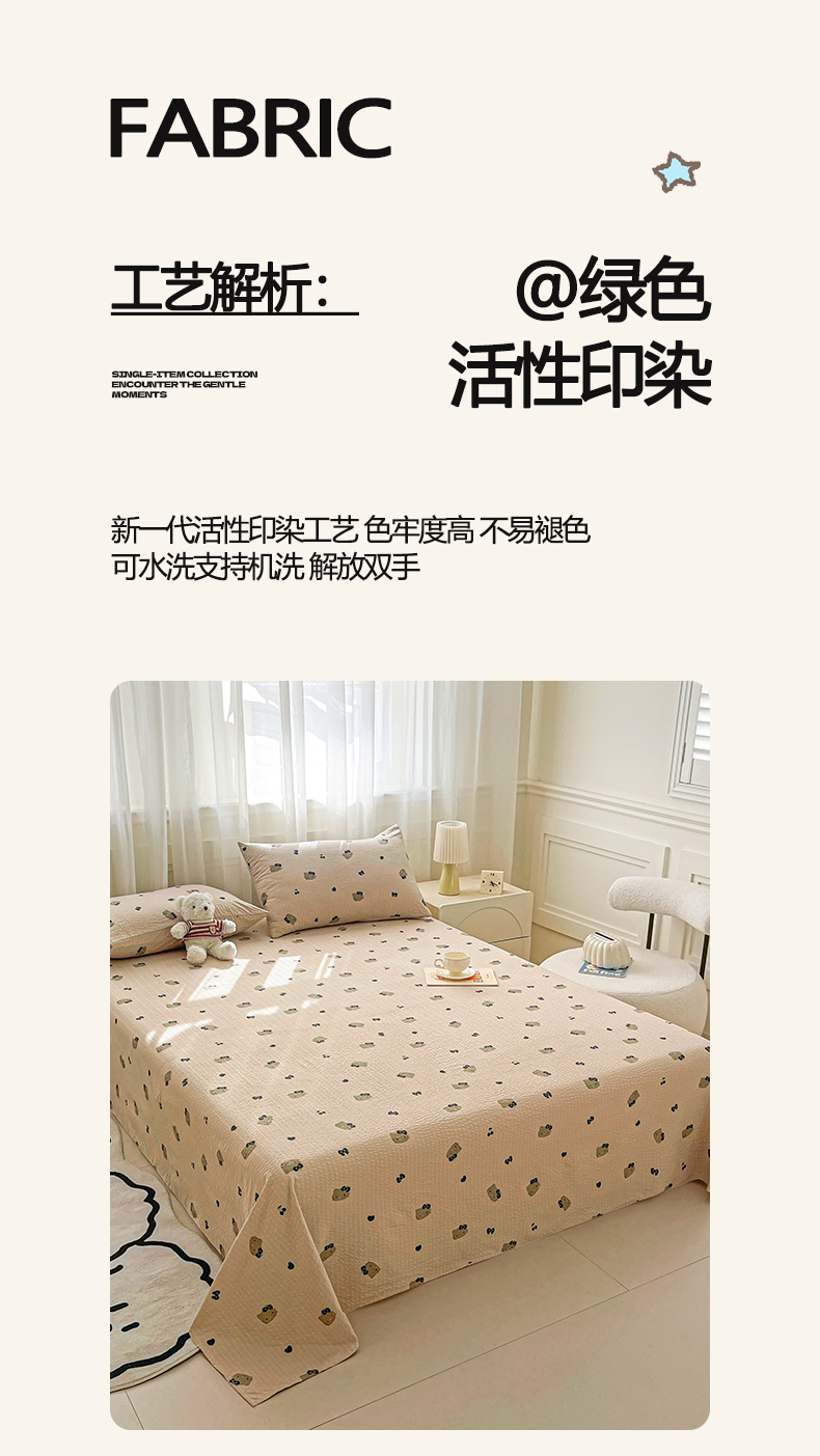 • 91家纺网 家纺一手货源 找家纺 几禾 2026新款高克重泡芙纱~印花款(单床单)-110g CD-日光漫游