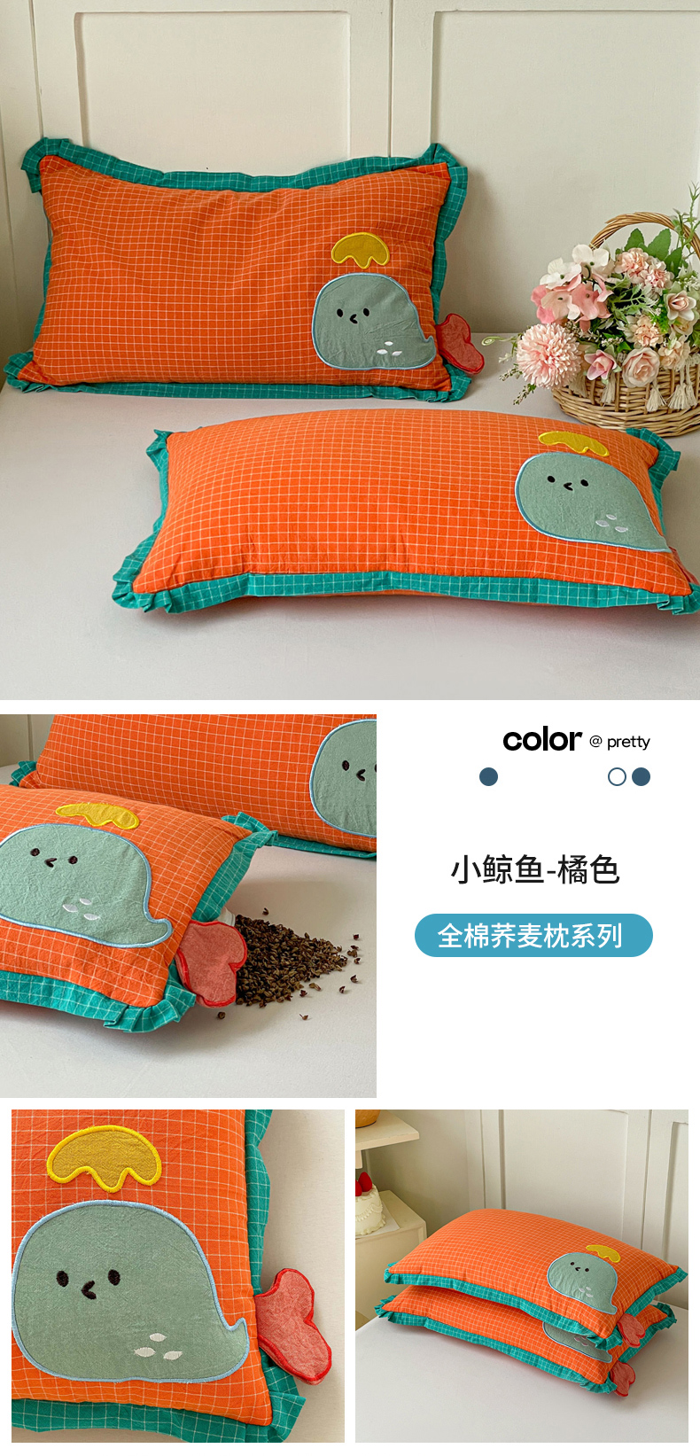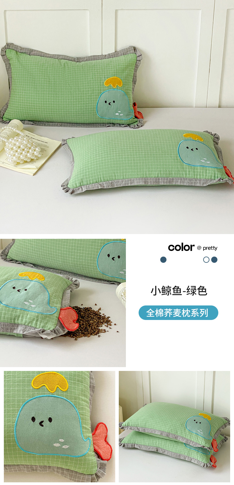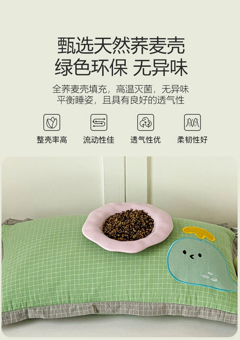 商品名称:梦叶草 2026新款全棉小鲸鱼荞麦枕枕头枕芯 小鲸鱼荞麦枕-灰色