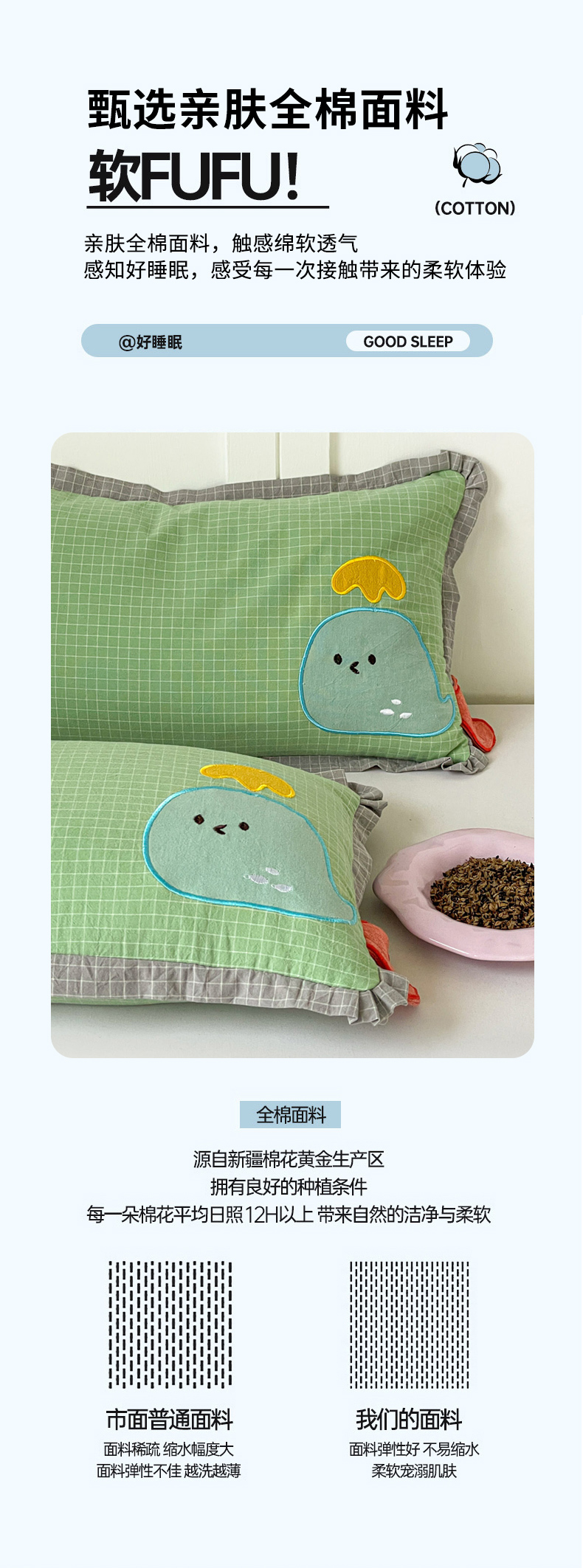 1、通州区市场监督局川姜分局提醒各电商,在纯棉产品中不要宣传100%纯棉,因绣花线花边等材料不一定纯棉。乳胶枕不要宣传纯天然,因其加工过程含化工物质。