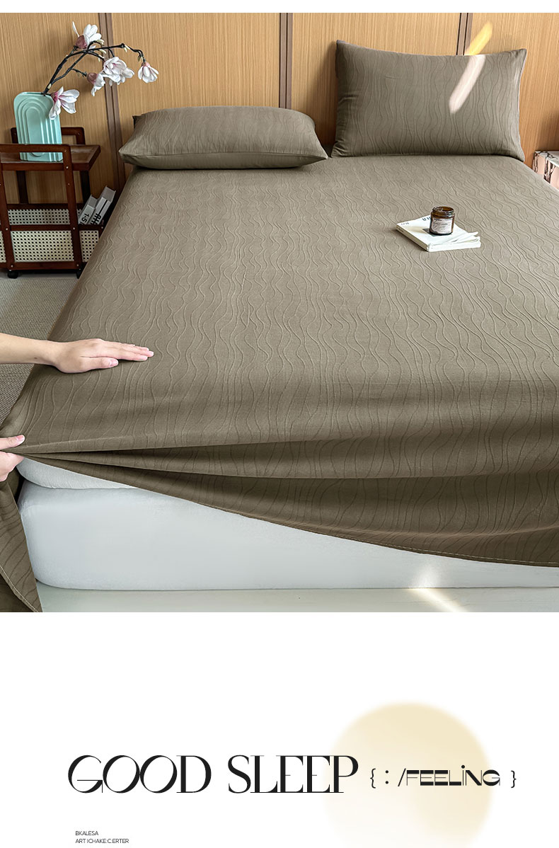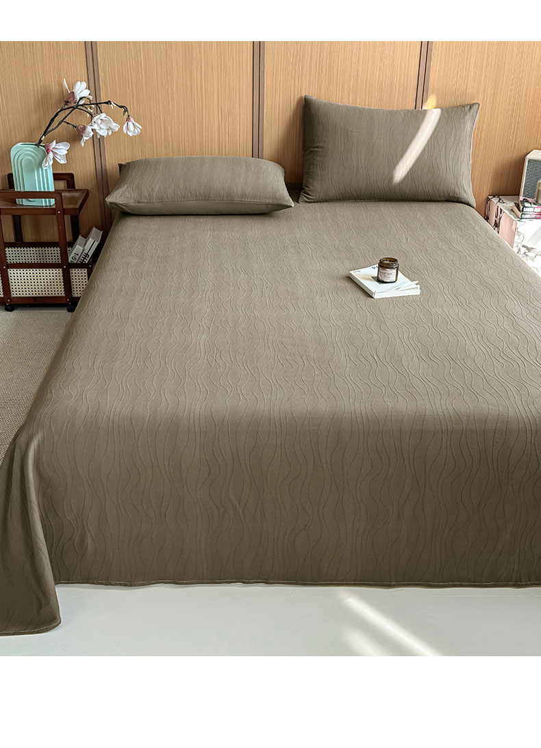 灰鲸 2026新款全棉简约三层纱色织提花单品床单 浅忆-摩卡