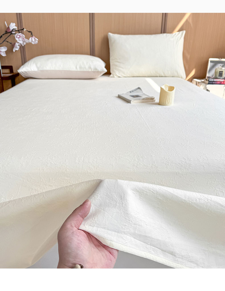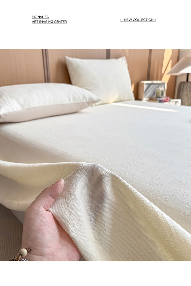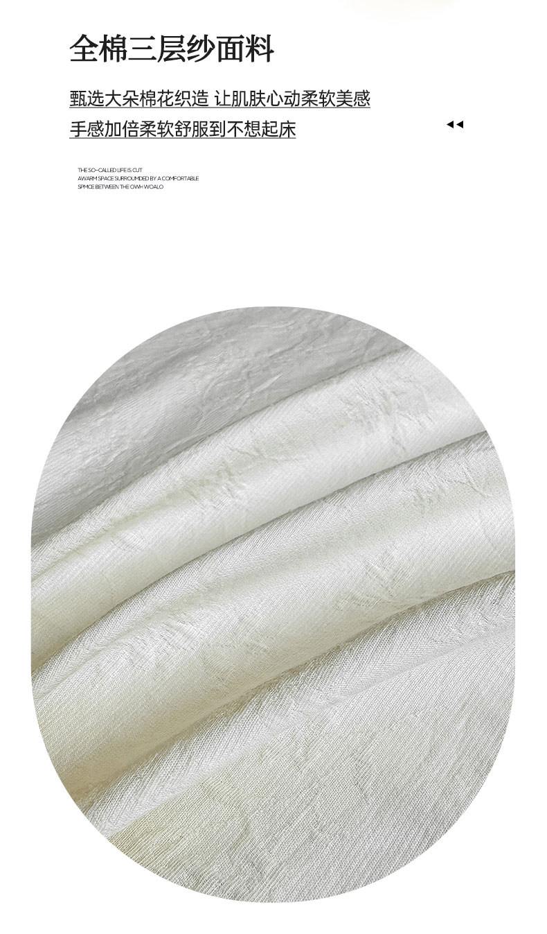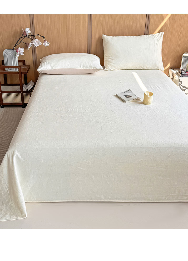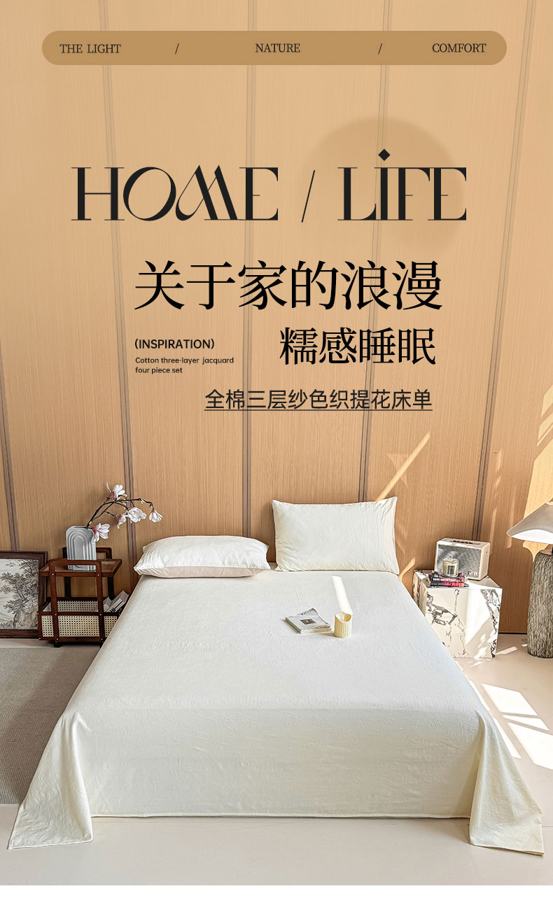 • 91家纺网 家纺一手货源 找家纺 灰鲸 2026新款全棉简约三层纱色织提花单品床单 花影-杏仁奶霜