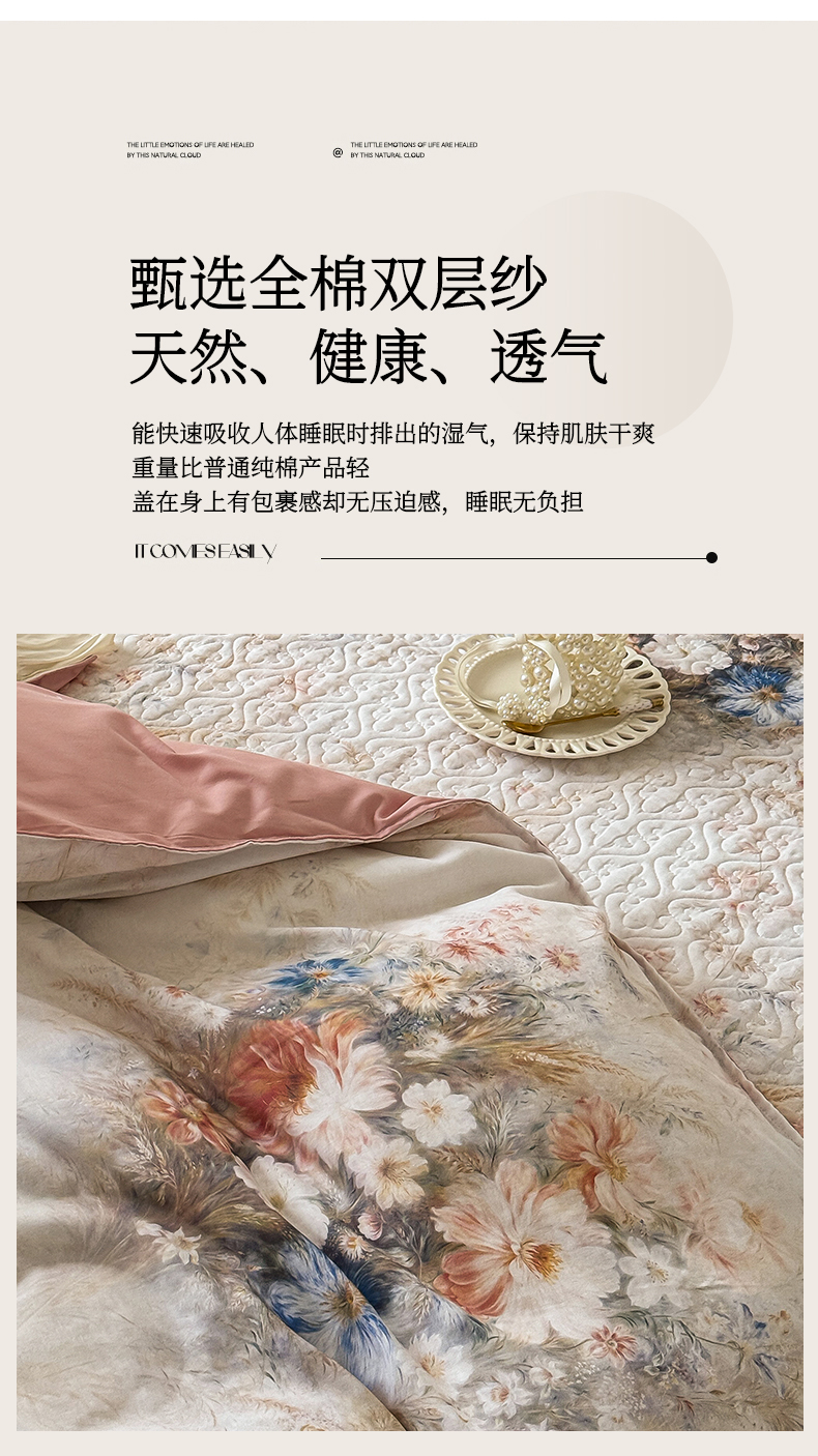 (总)花香四季家纺 2026新款全棉双层纱数码印花四件套,半夏,洛丽可,朝花夕拾,海棠花开-紫,海棠花开-绿