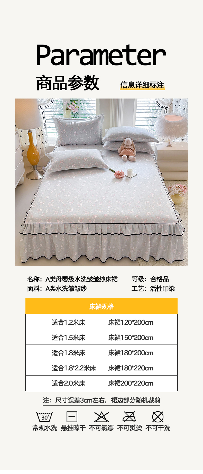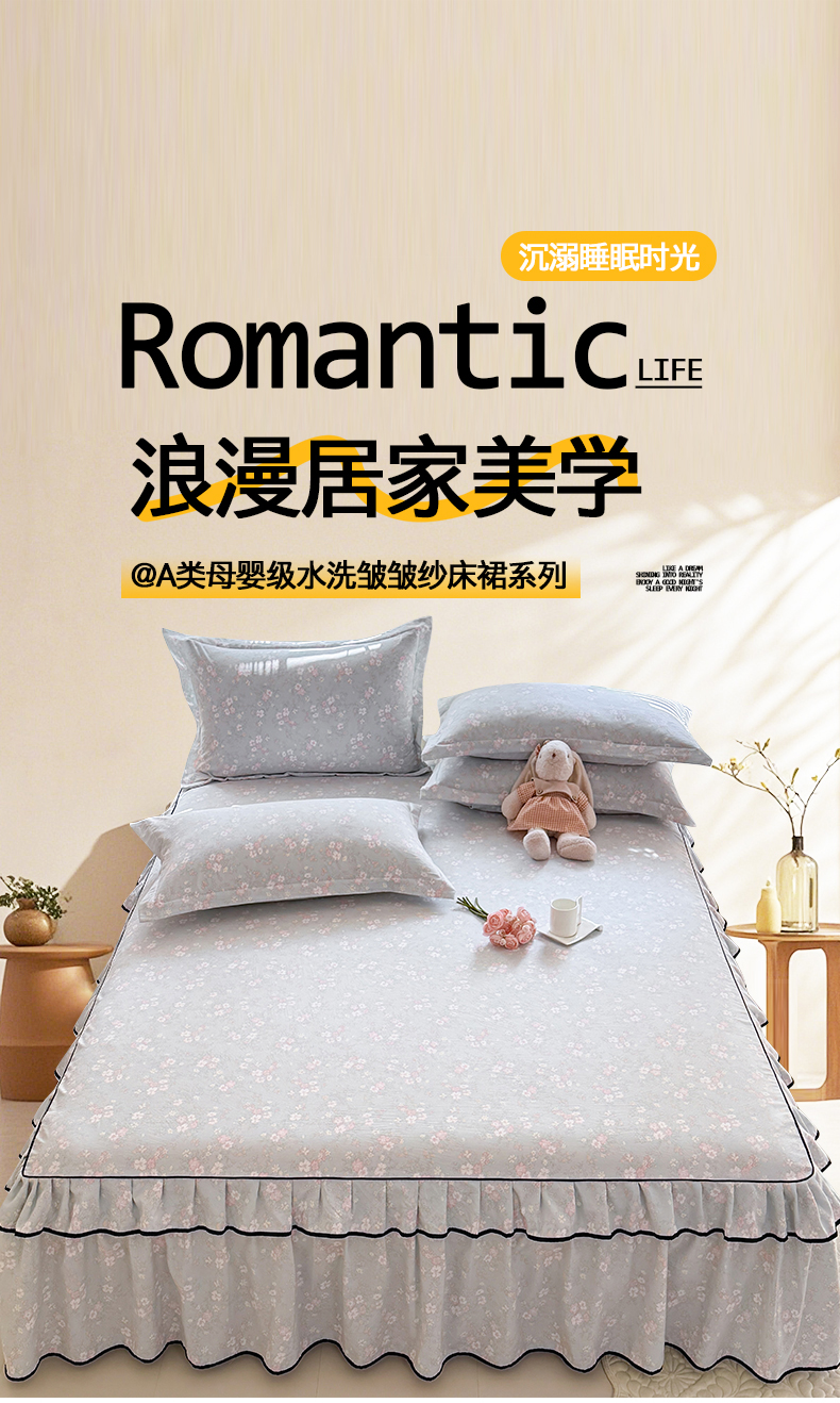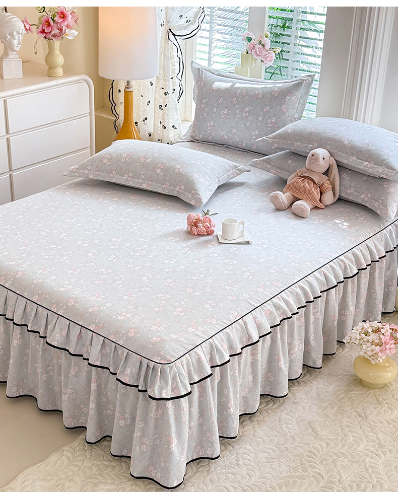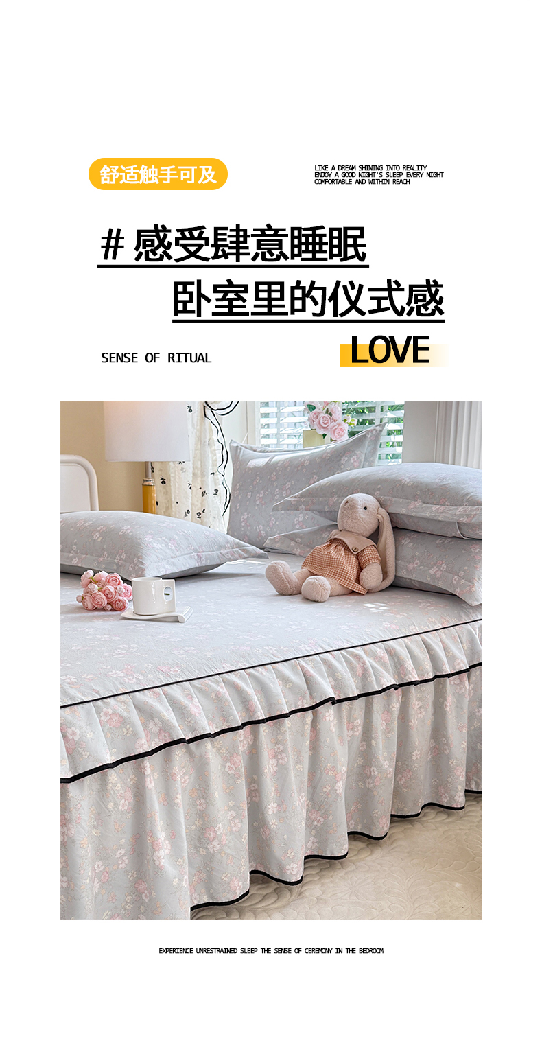 (总)优家居 2026新款A类水洗棉床裙单件三件套皱皱纱韩版公主风花边床罩直播爆款外贸定制,木槿花,一口葡萄,欧若拉,小苍蓝,梦华录,海棠花颂,爱心蝴蝶结,巴宝格-咖,豹纹-咖,蝶舞芳华,繁花似锦,粉色猫猫,粉雾结语,花花田园,莓好时光,秘园絮语,陌上花开,紫雾花园