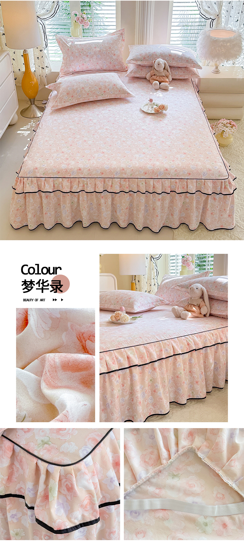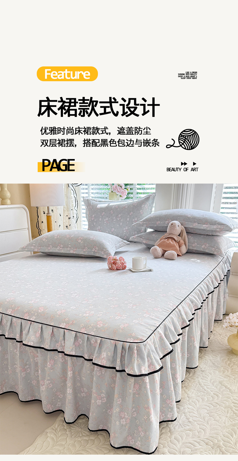 • 91家纺网 家纺一手货源 找家纺 (总)优家居 2026新款A类水洗棉床裙单件三件套皱皱纱韩版公主风花边床罩直播爆款外贸定制,木槿花,一口葡萄,欧若拉,小苍蓝,梦华录,海棠花颂,爱心蝴蝶结,巴宝格-咖,豹纹-咖,蝶舞芳华,繁花似锦,粉色猫猫,粉雾结语,花花田园,莓好时光,秘园絮语,陌上花开,紫雾花园
