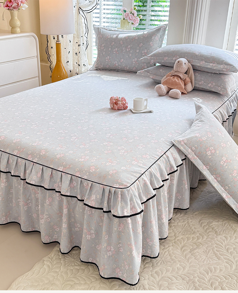 • 91家纺网 家纺一手货源 找家纺 优家居 2026新款A类水洗棉床裙单件三件套皱皱纱韩版公主风花边床罩直播爆款外贸定制 小苍蓝