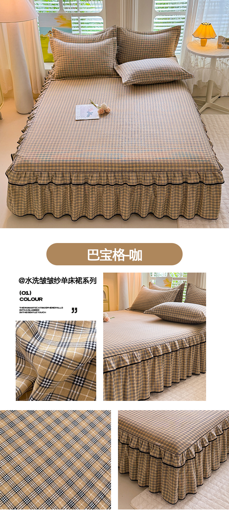 (总)优家居 2025新品水洗棉床裙四件套韩版糯糯棉水洗皱皱纱床罩直播爆款,豹纹-咖,爱心蝴蝶结,巴宝格-咖,蝶舞芳华,繁花似锦,粉色猫猫,粉雾结语,花花田园,莓好时光,秘园絮语,陌上花开,紫雾花园
