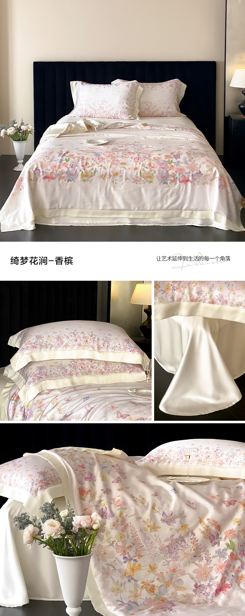 商品名称:云栖家居 2026新款60天丝数码印花夏被四件套-绮梦花间 绮梦花涧-香槟