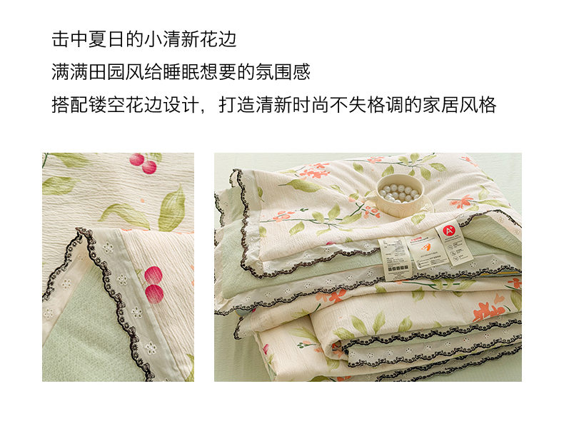 • 91家纺网 家纺一手货源 找家纺 (总)招财星家纺 2026新款A类全棉花边云感双层纱大豆纤维夏被四件套夏被夏凉被空调被(带质检报告买家秀),花边款-金枝玉叶,花边款-缤纷花朵,花边款-草莓气球,花边款-格子木马-蓝,花边款-格子木马-绿,花边款-花季,花边款-花语,花边款-花园秘密,花边款-可爱熊猫,花边款-喇叭花,花边款-绿曼,花边款-萌宠花园,花边款-幸运结-蓝,花边款-幸运结-绿,花边款-长颈鹿