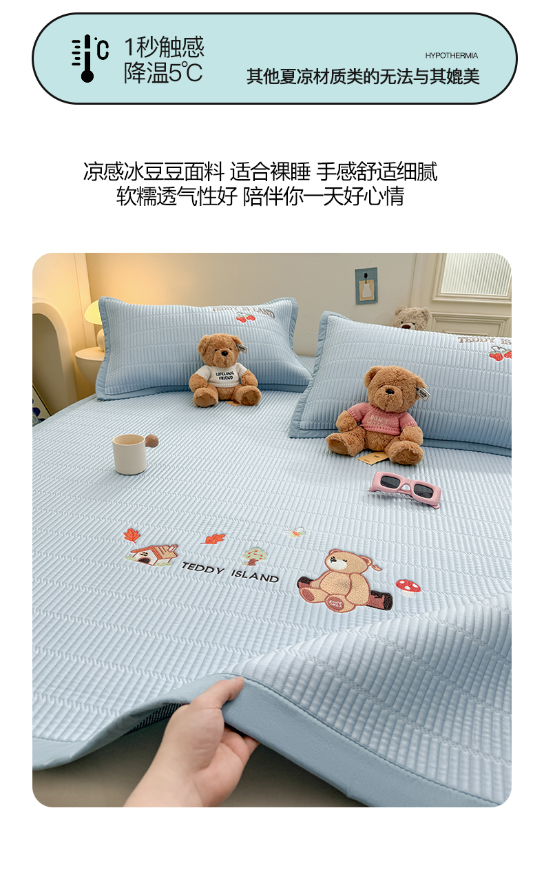 当前位置: 91家纺网 > 商品网购 > 床上用品 > 凉席 > 其他凉席 > 耐思家纺 2026新款A类高端刺绣pe乙纶冰豆豆席爱兰系列正版授权(提供买家秀)床笠款 蓝屿泰迪-蓝