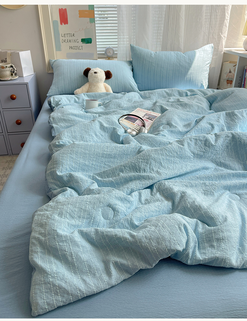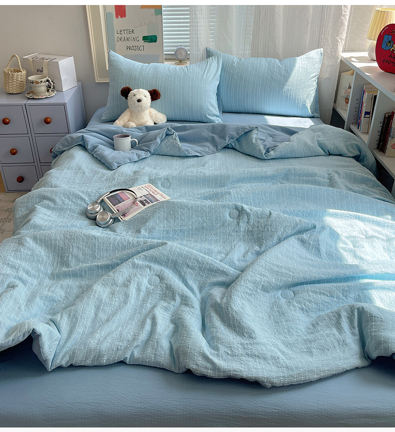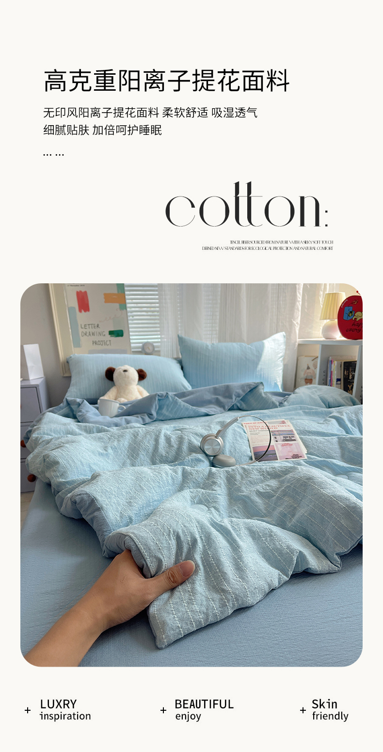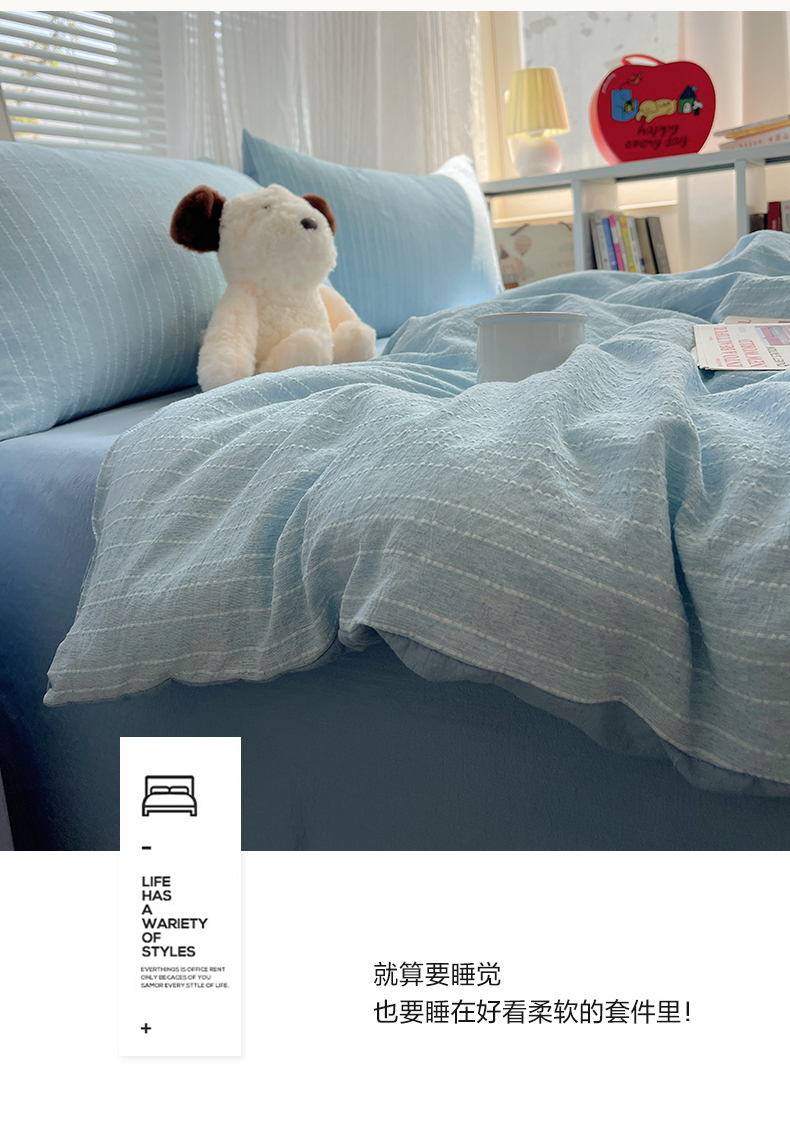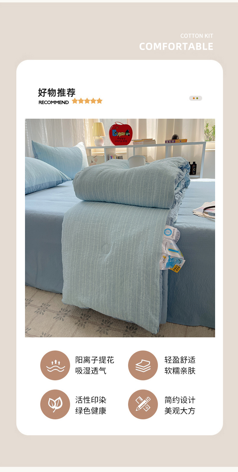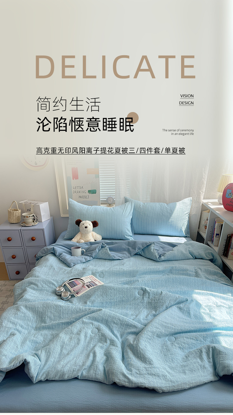 当前位置: 91家纺网 > 商品网购 > 床品套件 > 四件套 > 夏被四件套 > 栩裕纺织 2026新款高克重无印风阳离子提花单夏被-夏被三件套四件套 夏被-湖蓝