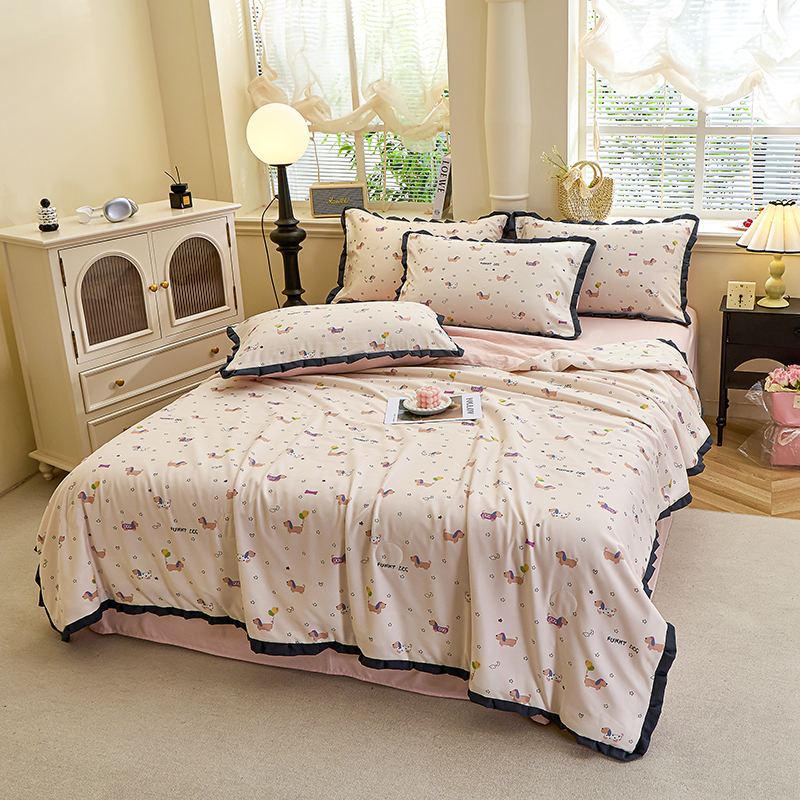 (总)人人爱家纺 2026新款泡芙纱欧式夏被夏凉被空调被四件套,蝴蝶梦,花藤小兔,咖啡狗,浪漫樱桃,抹茶梅梅,木马甜心,泡芙云朵,杉条叶,诗意柔,水云间,线条画心,长耳兔,紫色花语