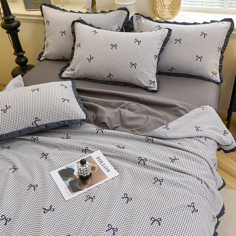 人人爱家纺 2026新款赫本风花边夏被夏凉被空调被 格子蝴蝶结
