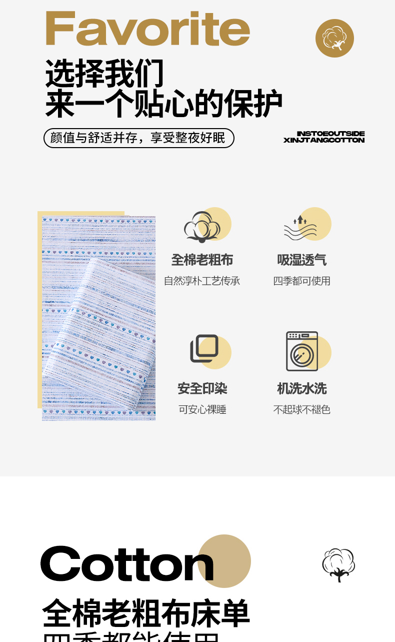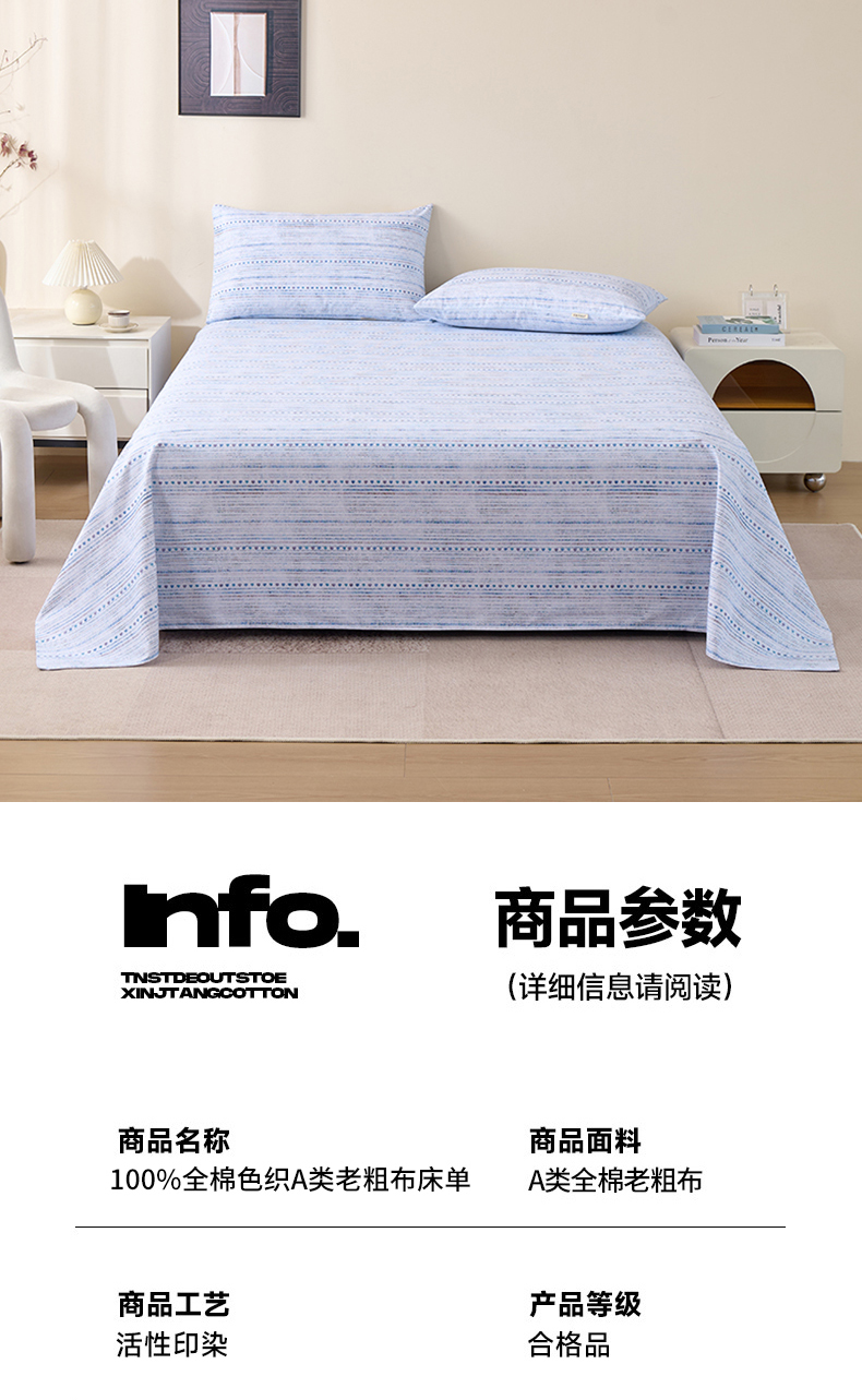 商品名称:(总)居美良品 2026新款100%全棉A类新疆棉数码印花纯棉老粗布床单凉席二三件套