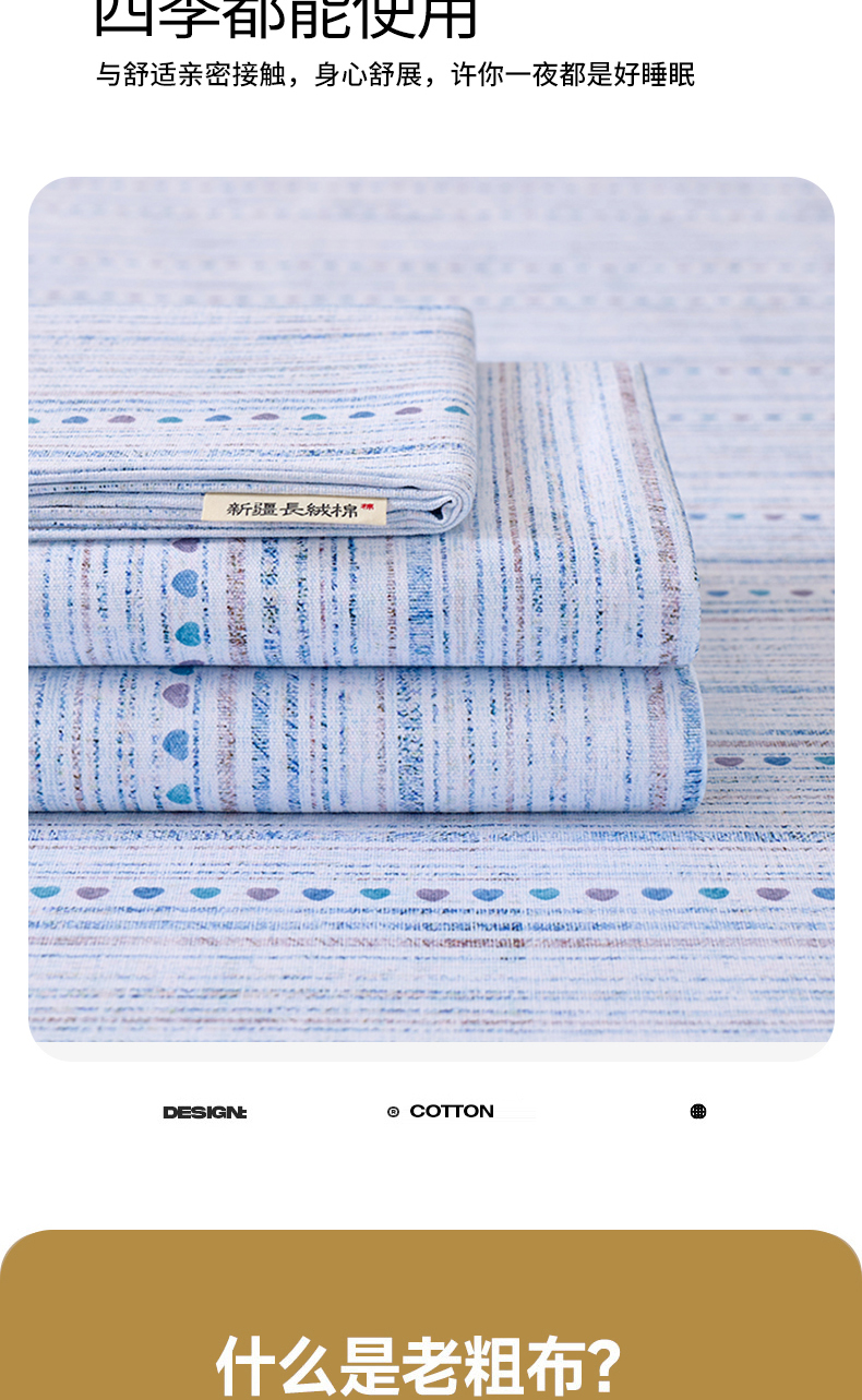 (总)居美良品 2025新款老粗布床单单件老粗布凉席三件套,可爱兔,蓝色花海,浪漫粉,浪漫蓝,条雅樱桃,别具一格,天马行空,初见粉,初见灰,浮光红,浮光绿,清新绿,天空灰,夏日-橙,阳光绿格,阳光蓝格,枇杷印象,沁香花语,青春条纹,布偶熊,彩虹格,草莓兔,芳华绽放,浪漫百合,柠檬-黄,田园小花,幸运-灰