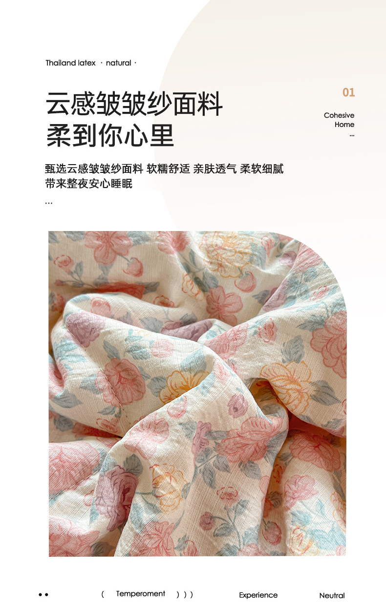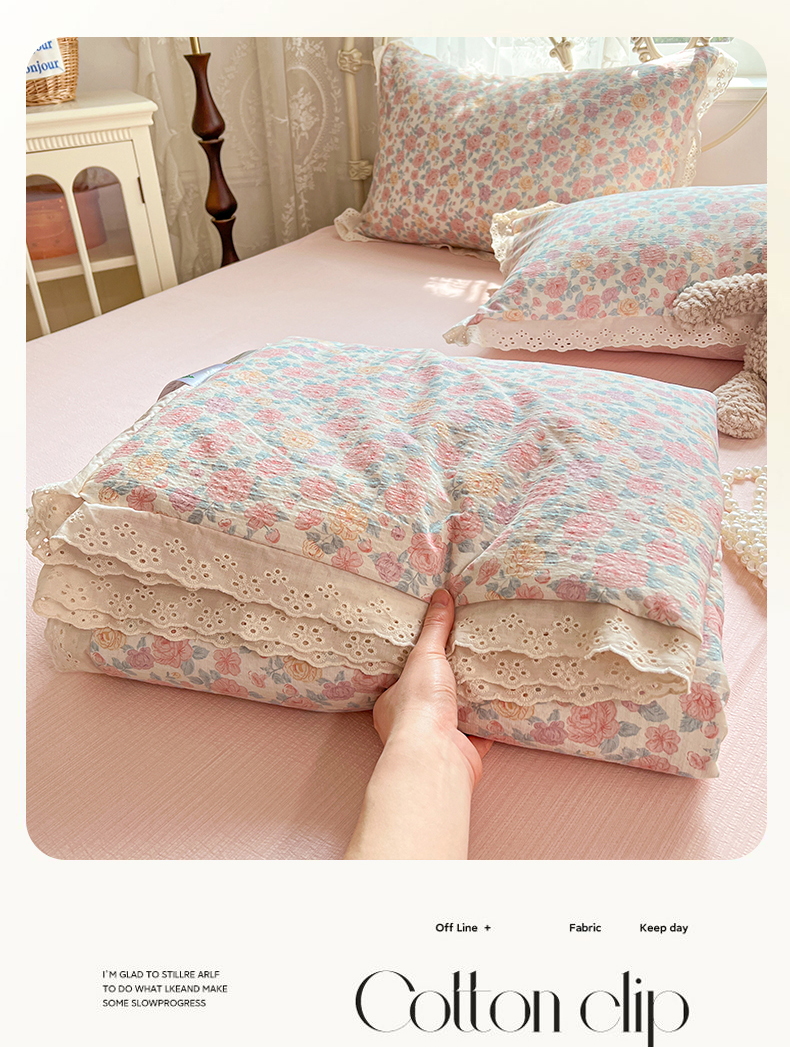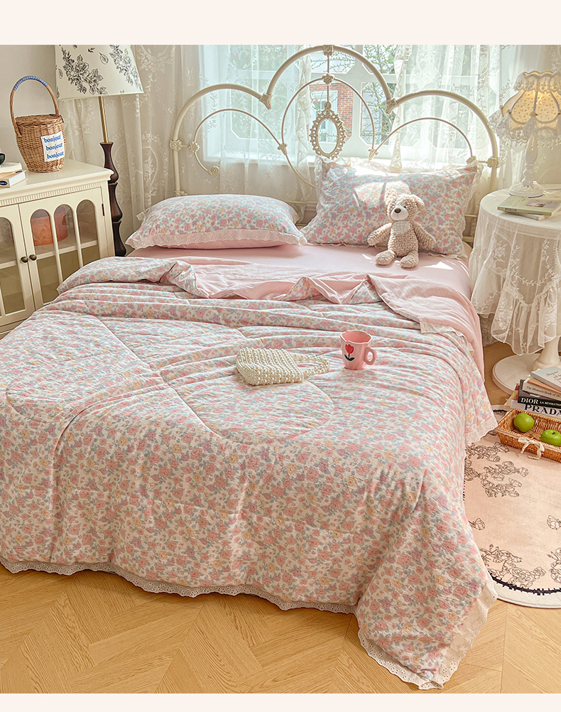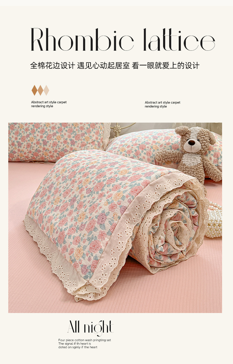 商品名称:优尚佳生活馆 2026新款云感皱皱纱全棉花边款夏被四件套 粉糯