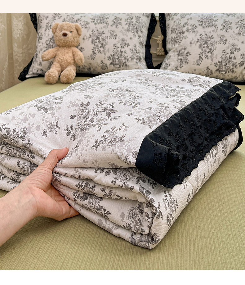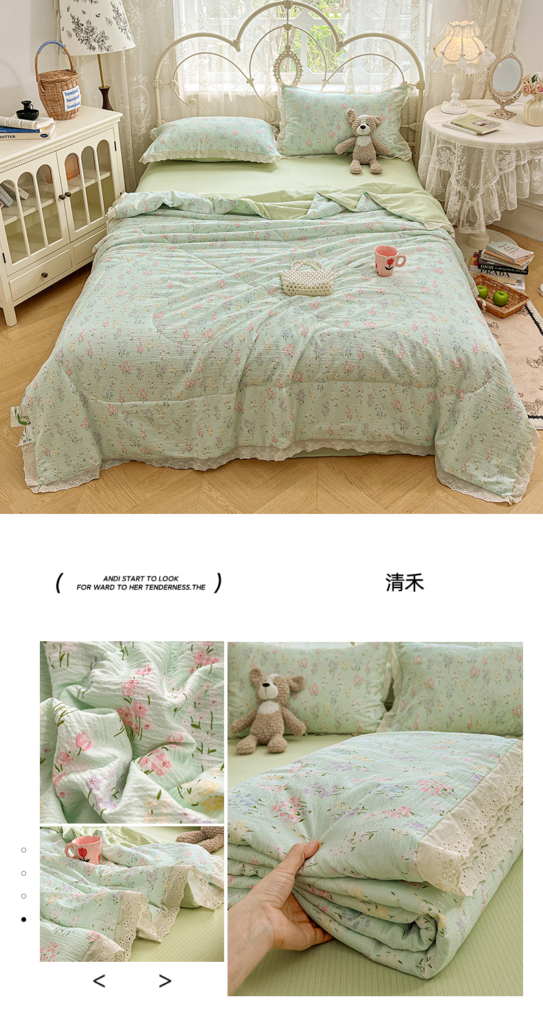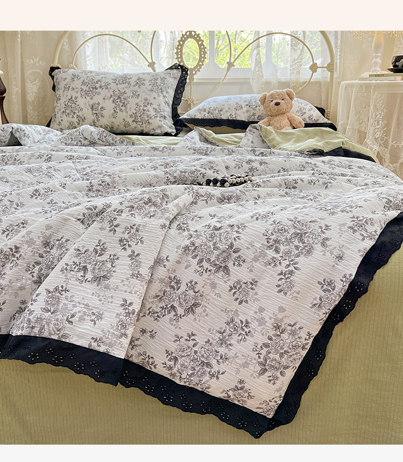 优佳优品 2026新款云感皱皱纱全棉花边款夏被四件套 疏影