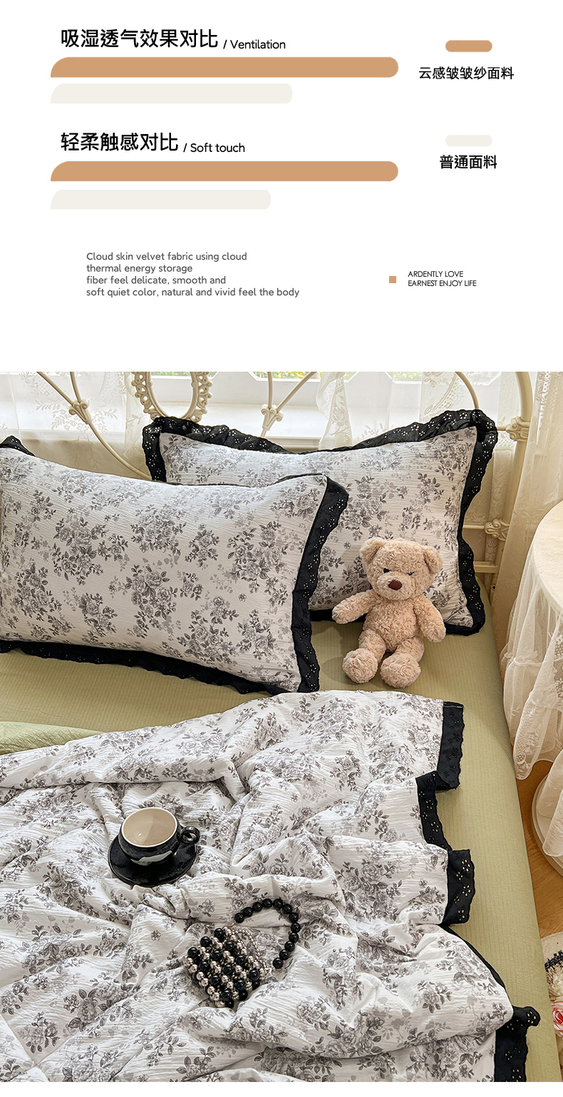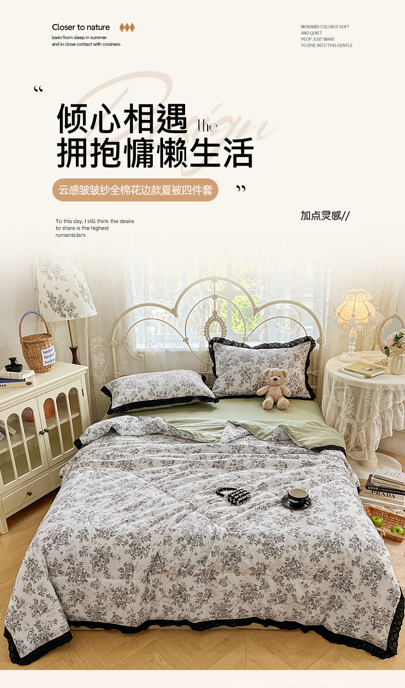 商品名称:优佳优品 2026新款云感皱皱纱全棉花边款夏被四件套 疏影
