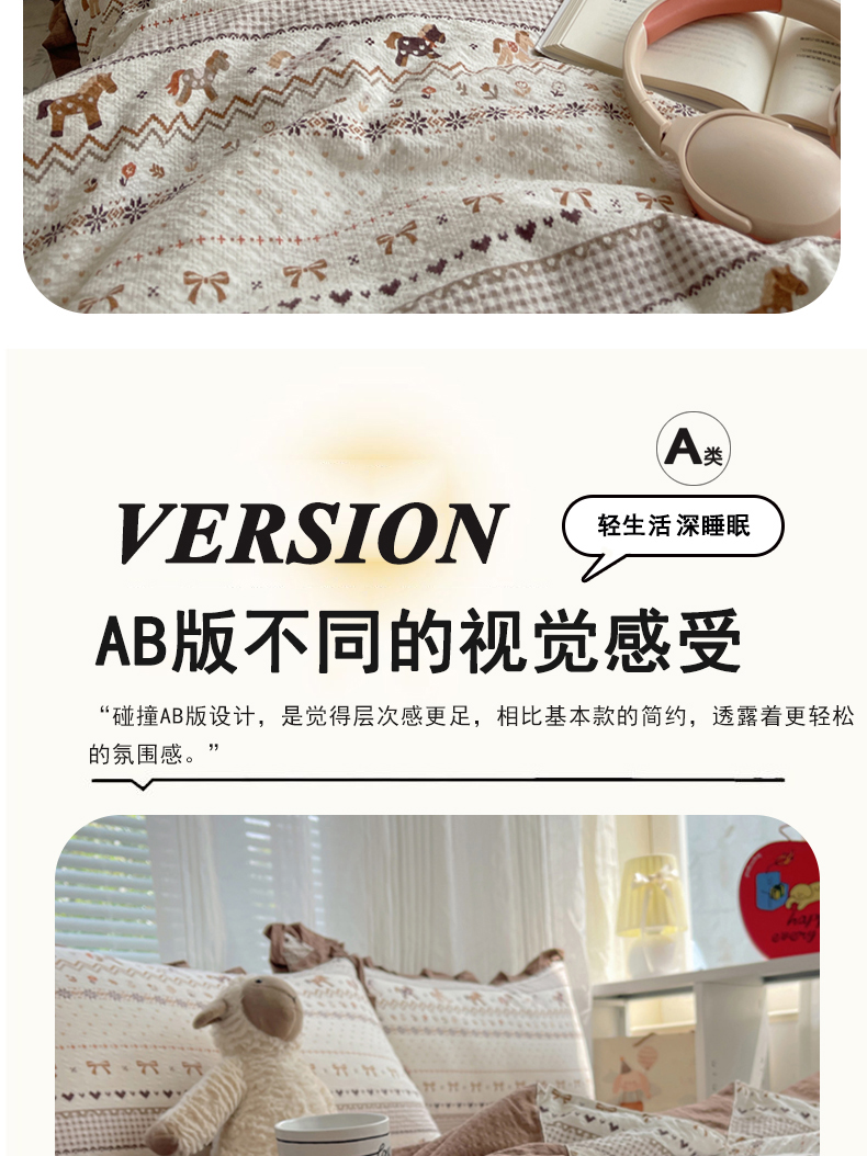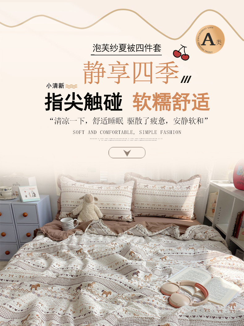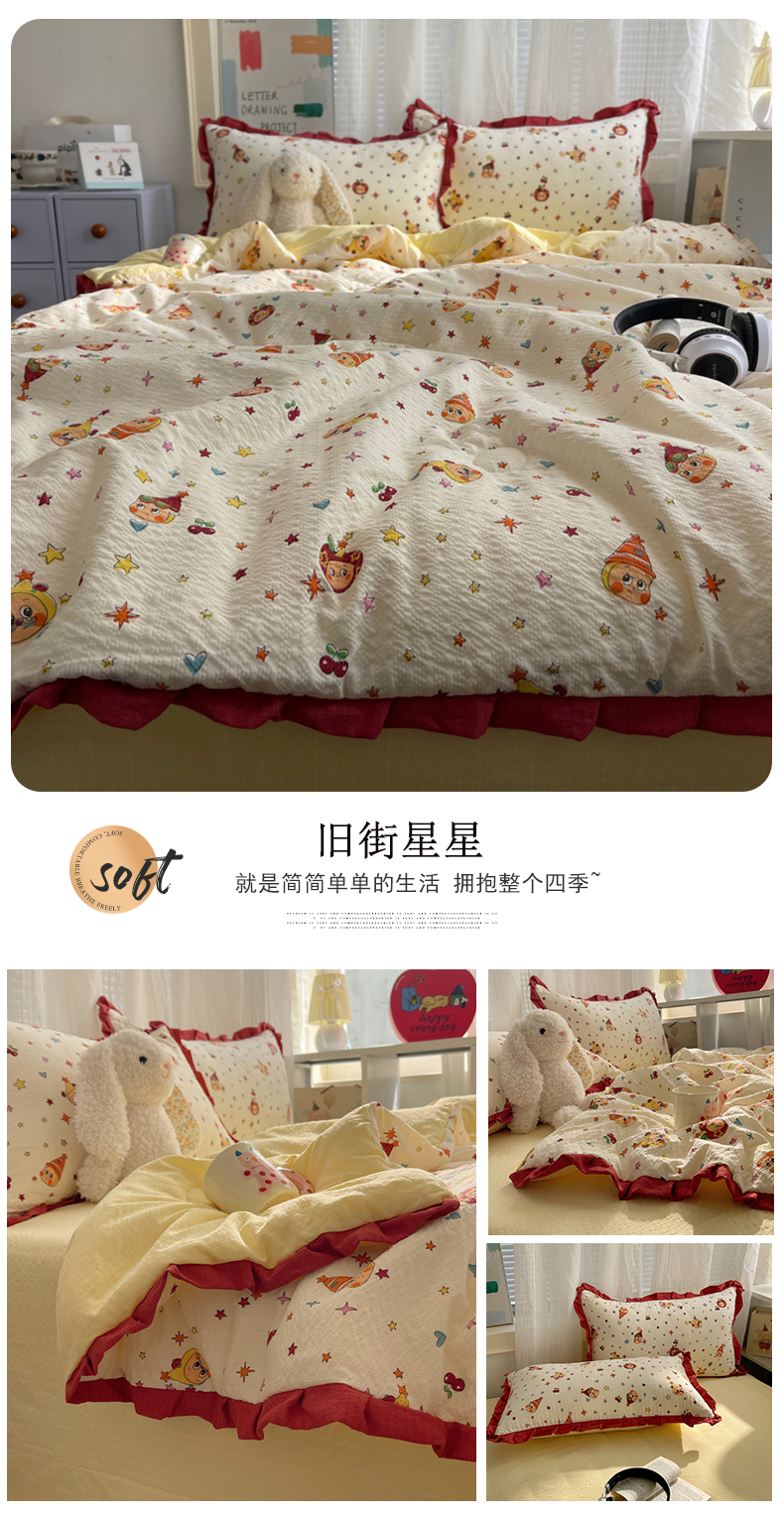 (总)迪梦姿家纺 2026新款高克重泡芙纱泡泡纱床盖款四件套系列,紫雾花蝶集,灰樱桃,春日甜桃心米,纯宅熊,猫咪集粉,躲猫猫,花野兔眠,旧街星星,莓系花伐,描线小猫咖,木马小花团,浅沙花影黄,浅沙花影蓝,田园兔,甜喵块块,甜心咖絮,甜心木马卷,兔仔花田,小兔裙边,星野蝴蝶结,悦悦小兔,只闻花香