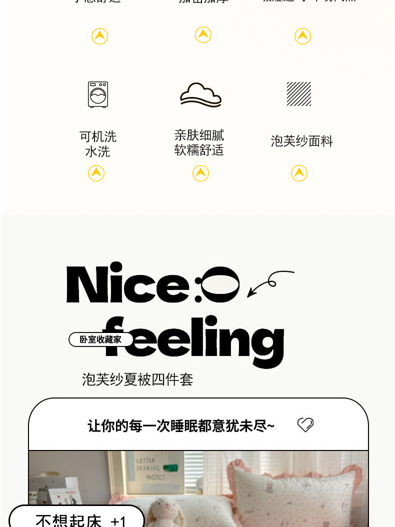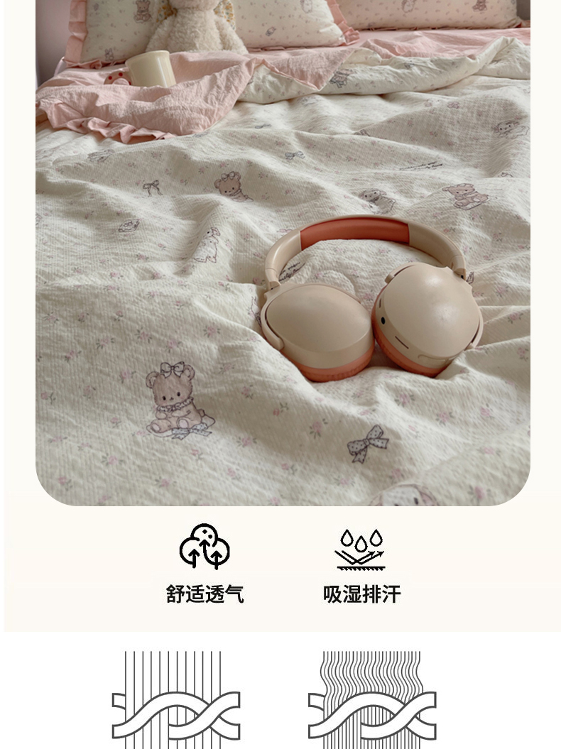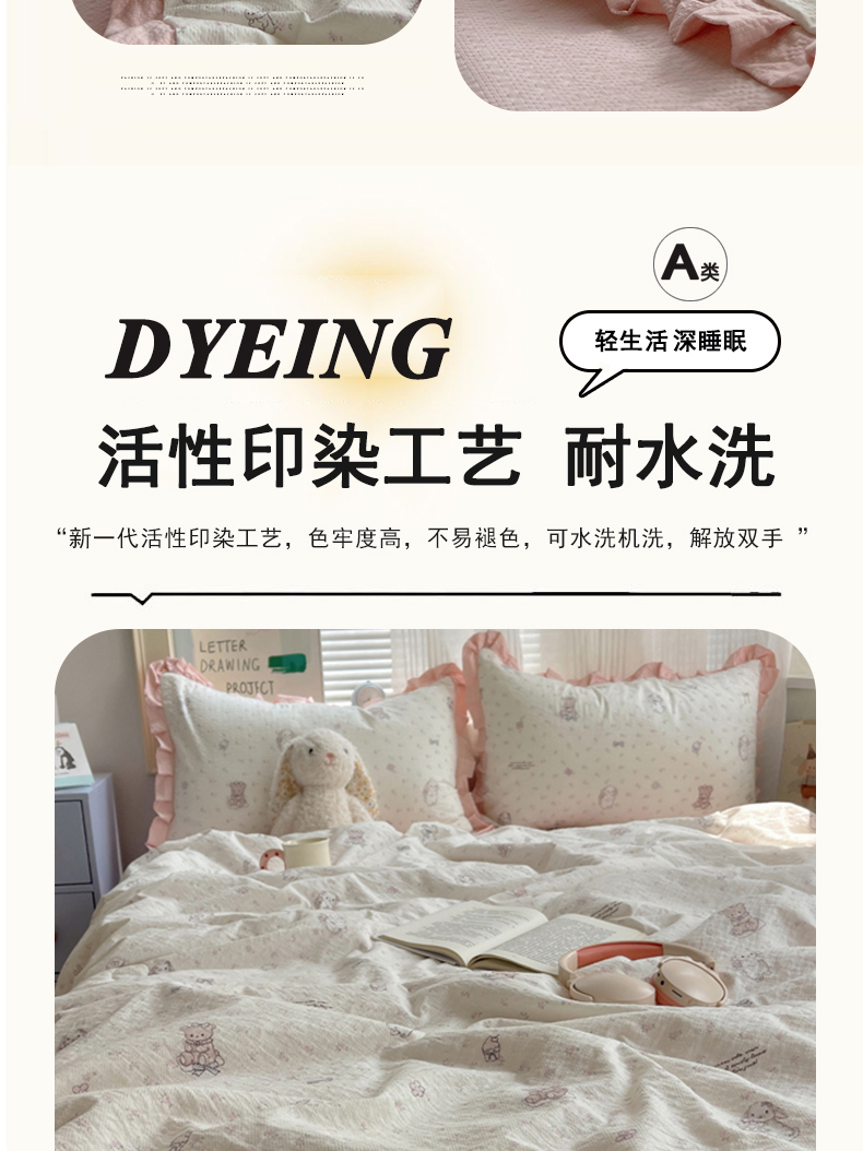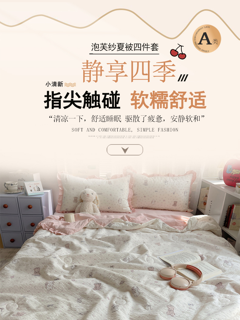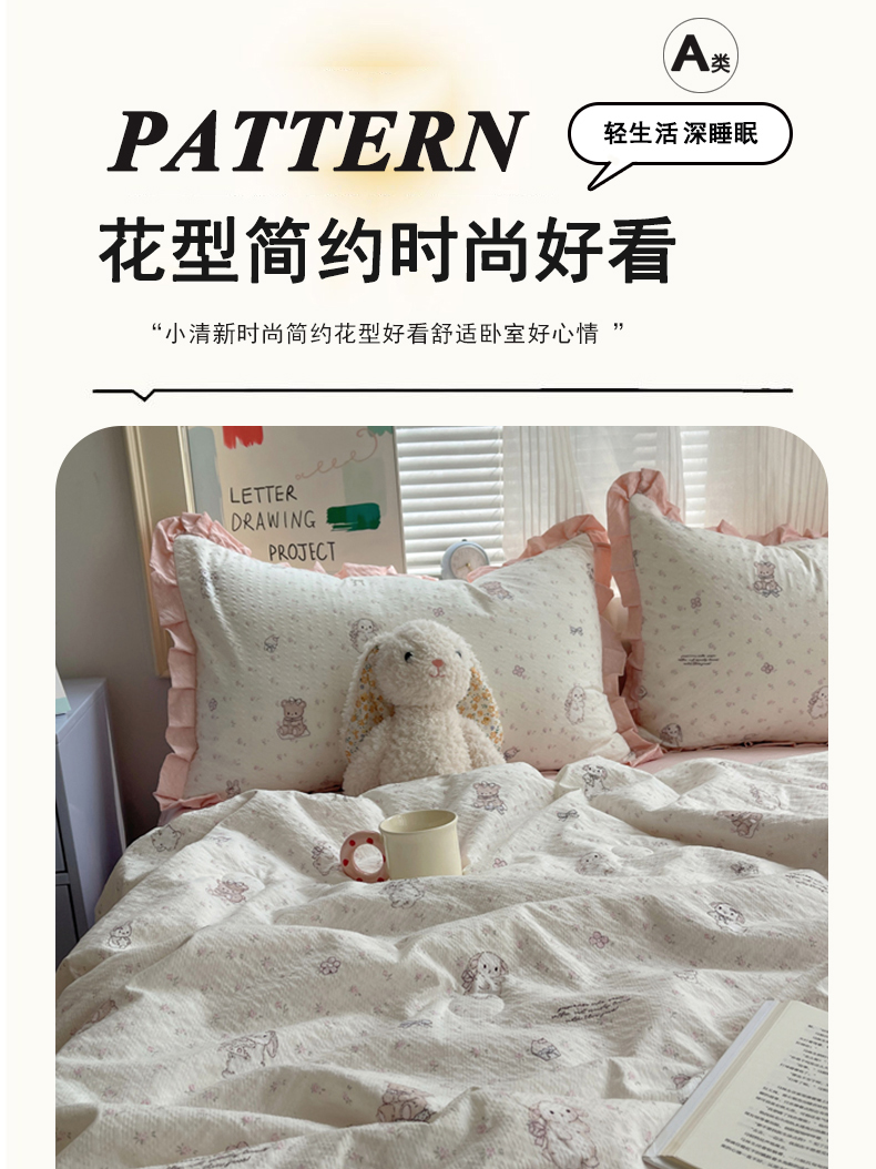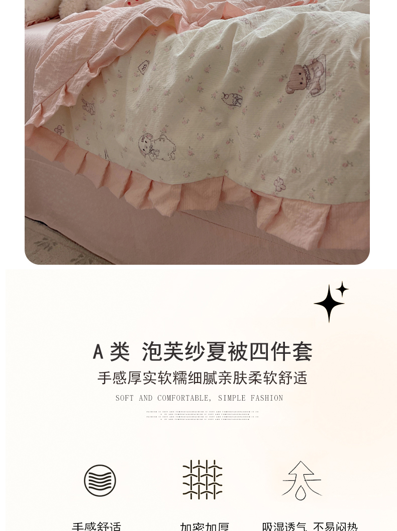 商品名称:迪梦姿家纺 2026新款泡芙纱花边款夏被四件套 悦悦小兔