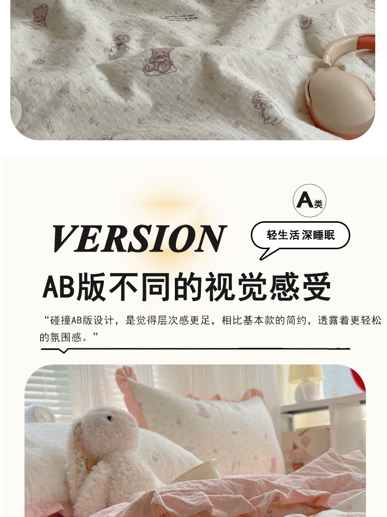 (总)迪梦姿家纺 2026新款高克重泡芙纱泡泡纱床单款四件套系列,兔仔花田,春日甜桃心米,纯宅熊,躲猫猫,花野兔眠,灰樱桃,旧街星星,猫咪集粉,莓系花伐,描线小猫咖,木马小花团,浅沙花影黄,浅沙花影蓝,田园兔,甜喵块块,甜心咖絮,甜心木马卷,小兔裙边,星野蝴蝶结,悦悦小兔,只闻花香,紫雾花蝶集